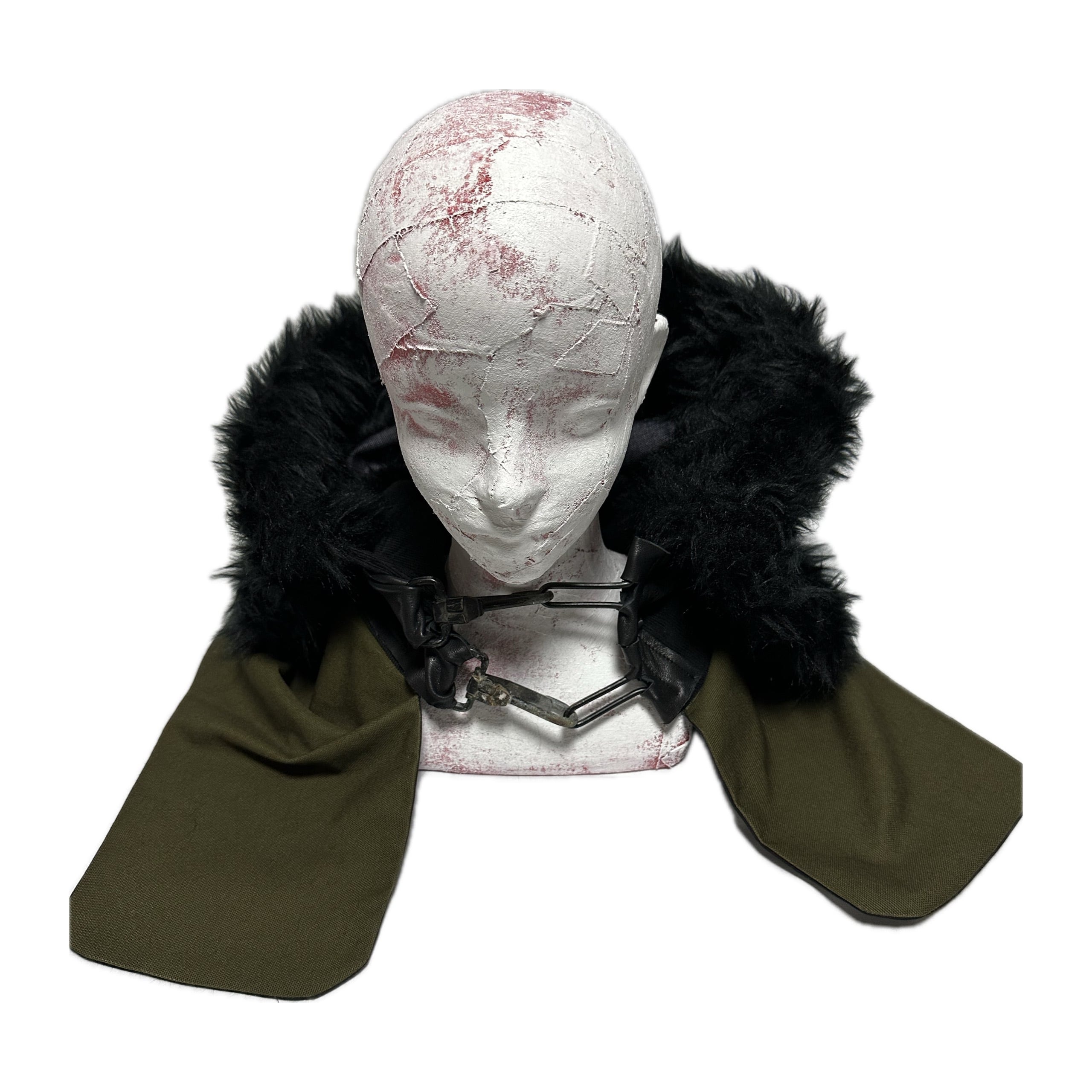 岡山デニムとレザー、コーデュロイ、カーキー生地の組み合わせで素材にこだわったファー付きポンチョになります。