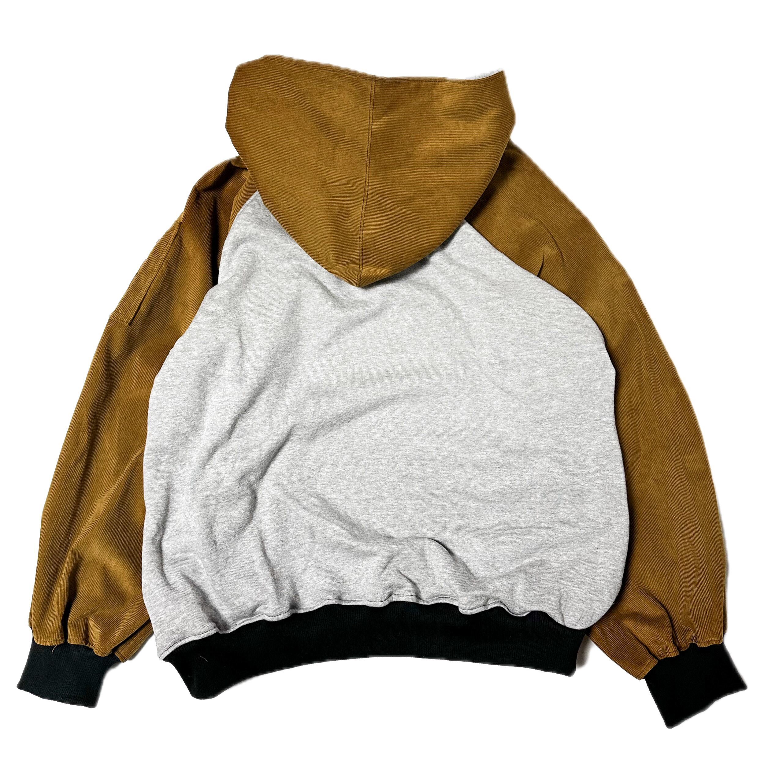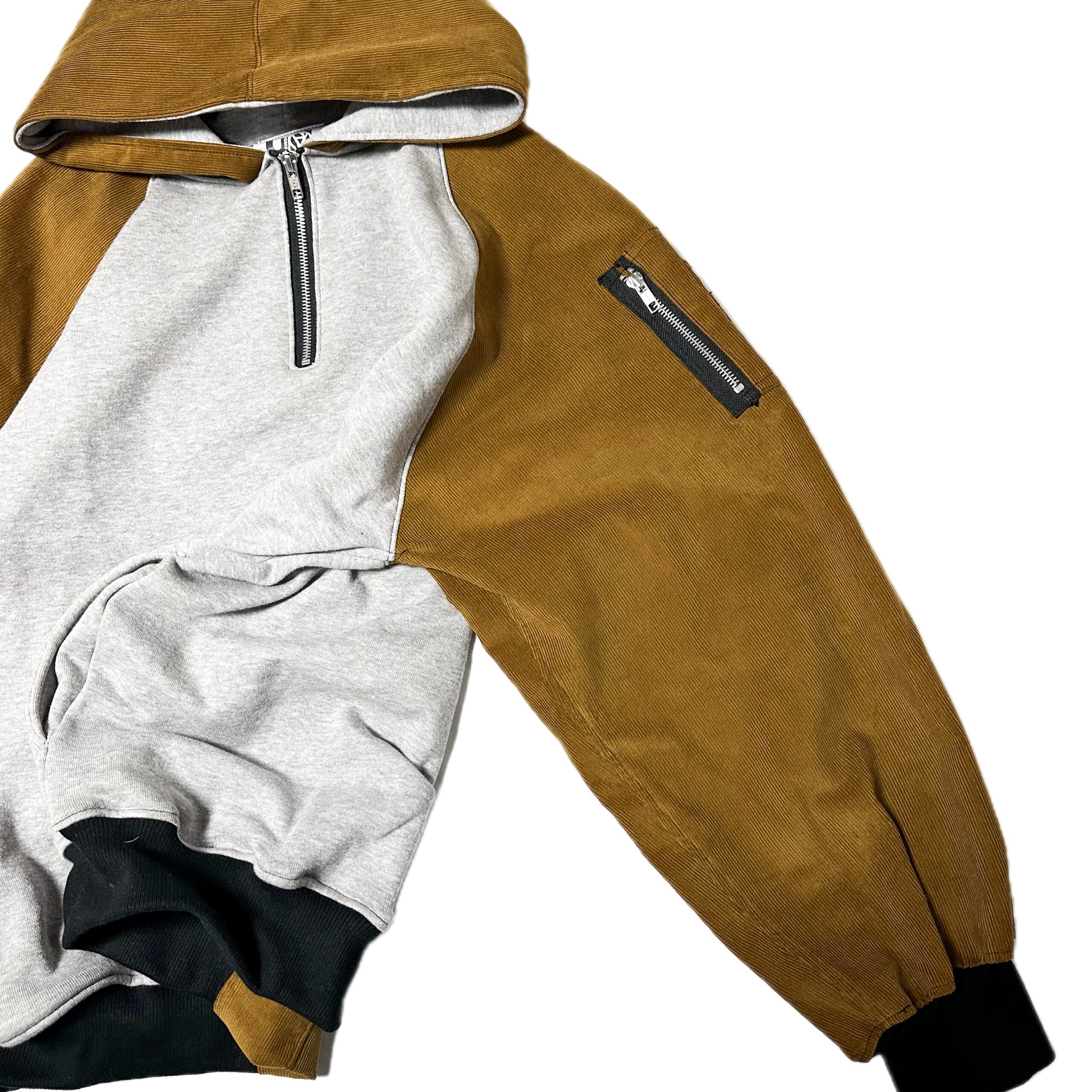 高品質なコーデュロイ生地にグレー、トレーナー生地の組み合わせ。