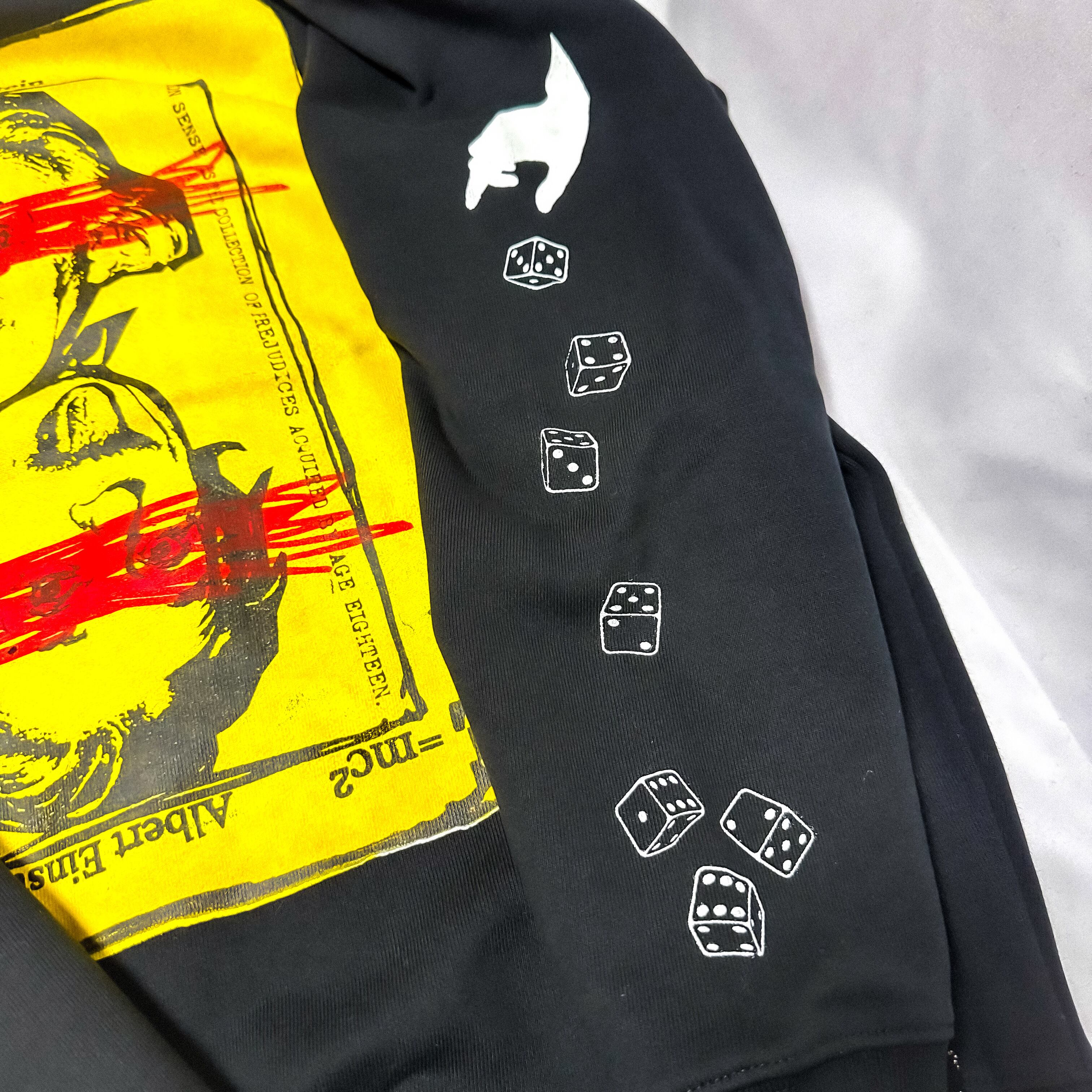 両袖にはサイコロを投げる手『神はサイコロを振らないから』を採用。