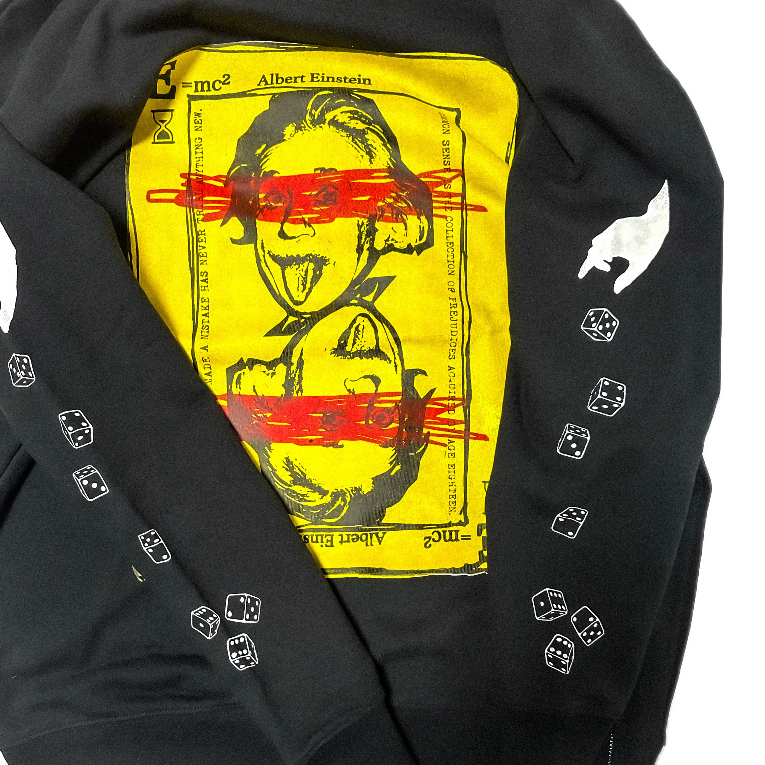 トランプ柄をモチーフにアインシュタインをシルクスクリーンに落とし込みました。