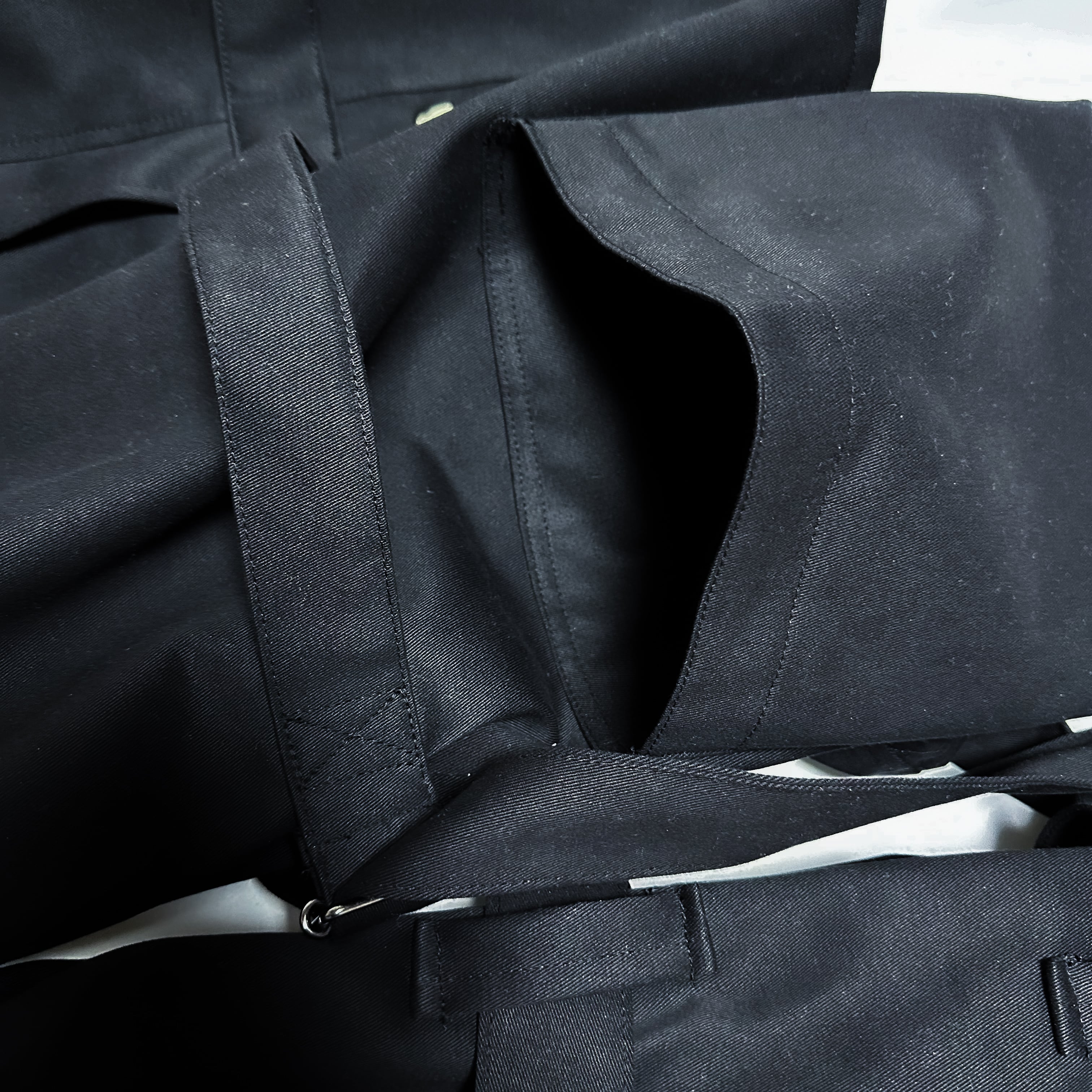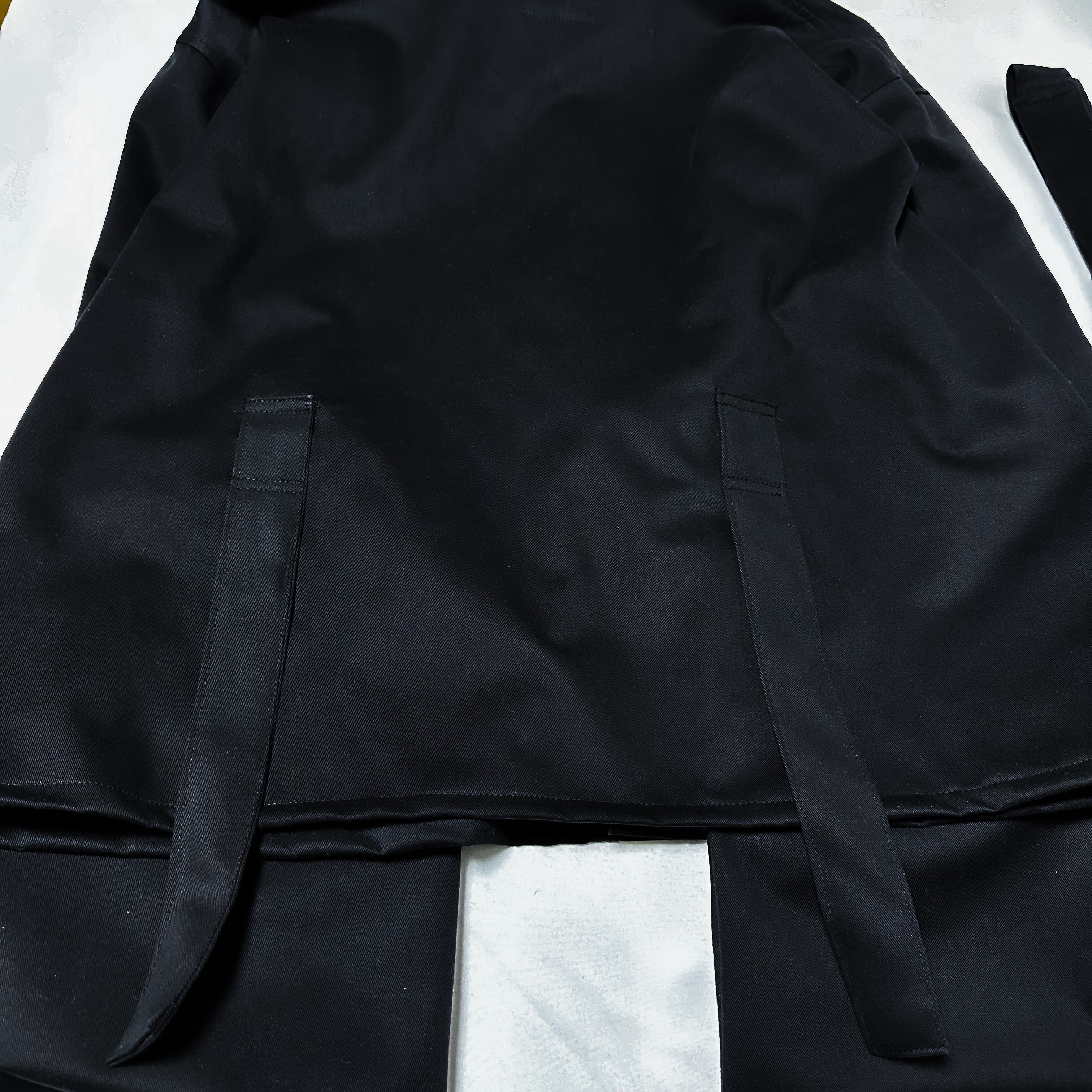 着用時袖ベルトがヒラヒラし個性的なディテールになります。