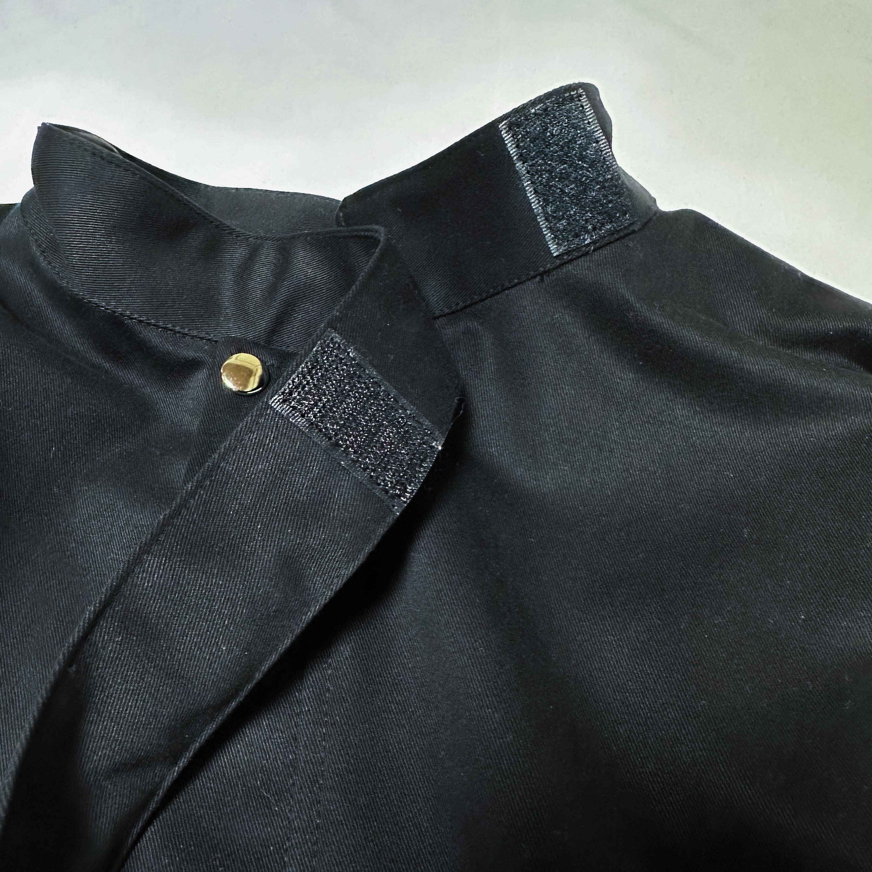首元のベルトはベルトの形を崩さないようにする為マジックテープを採用しました。