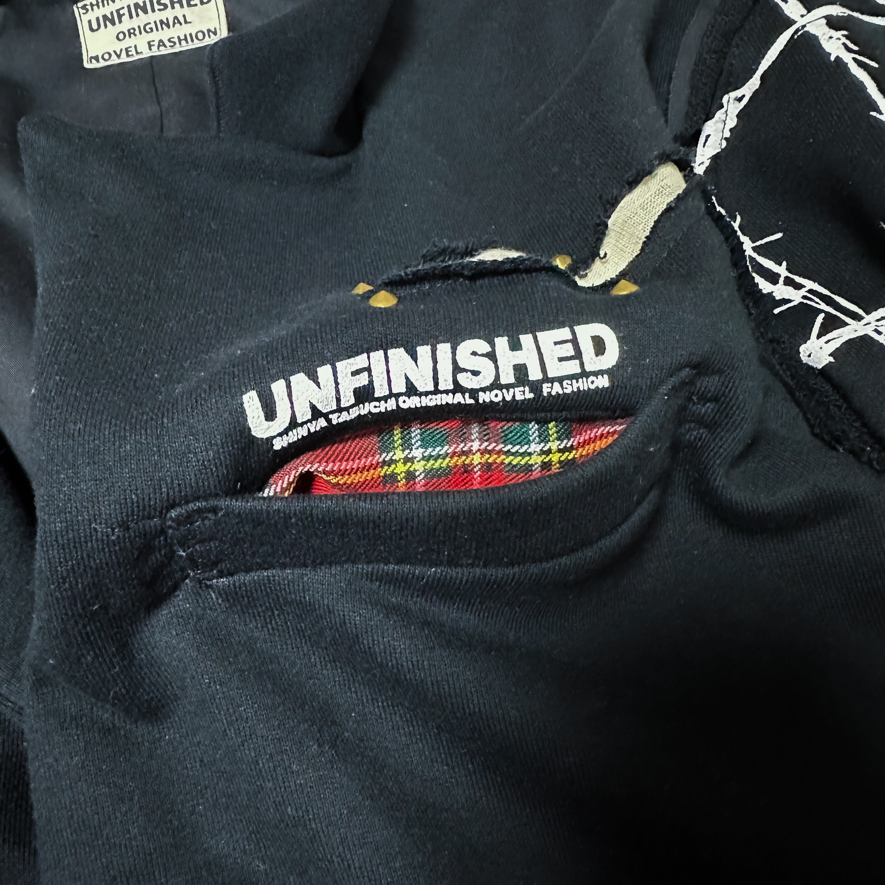 袖部分にはUNFINISHED独自のテキスタイルをシルクスクリーンにてプリントを施しました。
