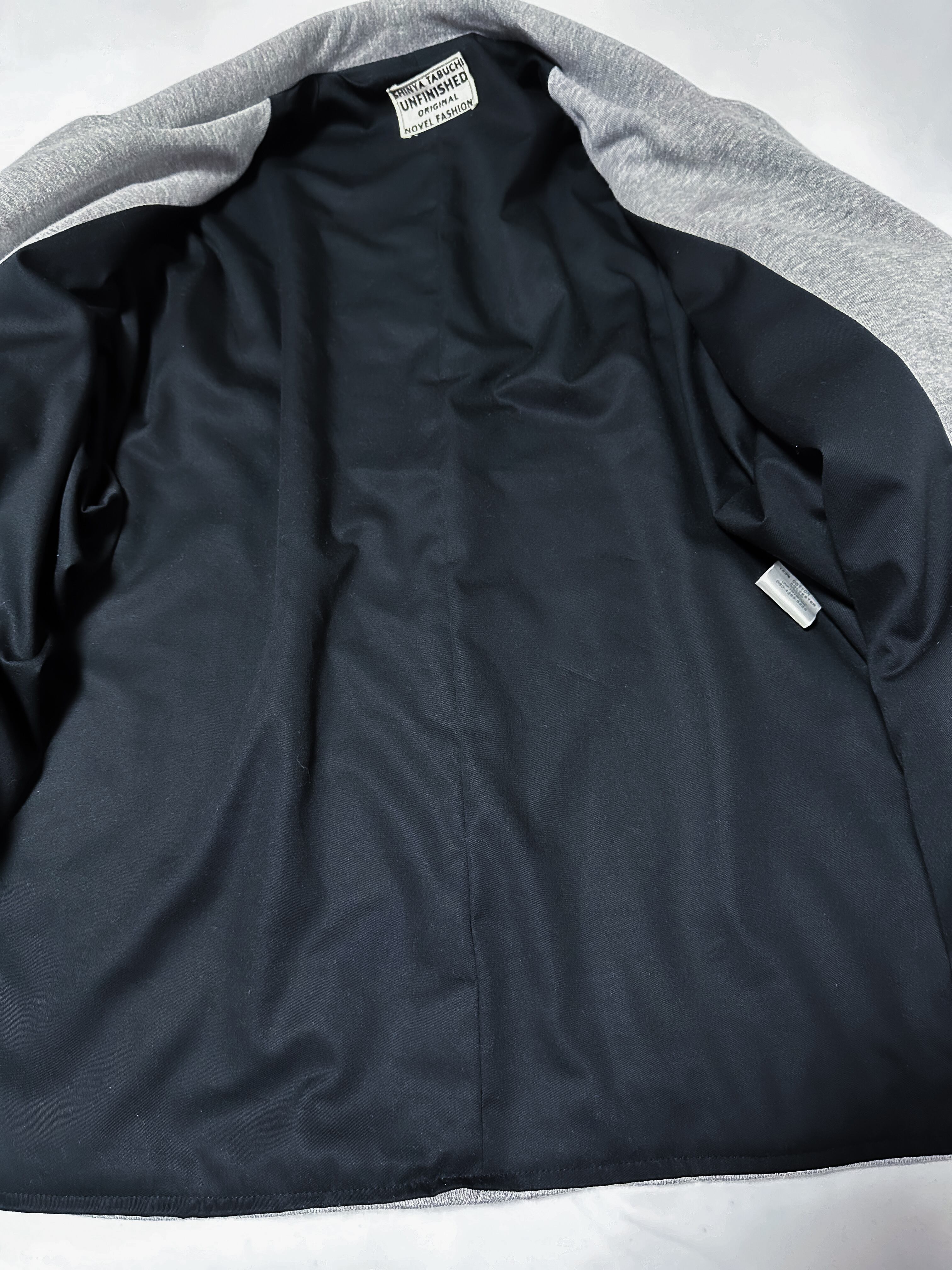 トレーナー生地をベースにテーラードジャケットとMA-1をドッキングした独特なシルエットを実現。