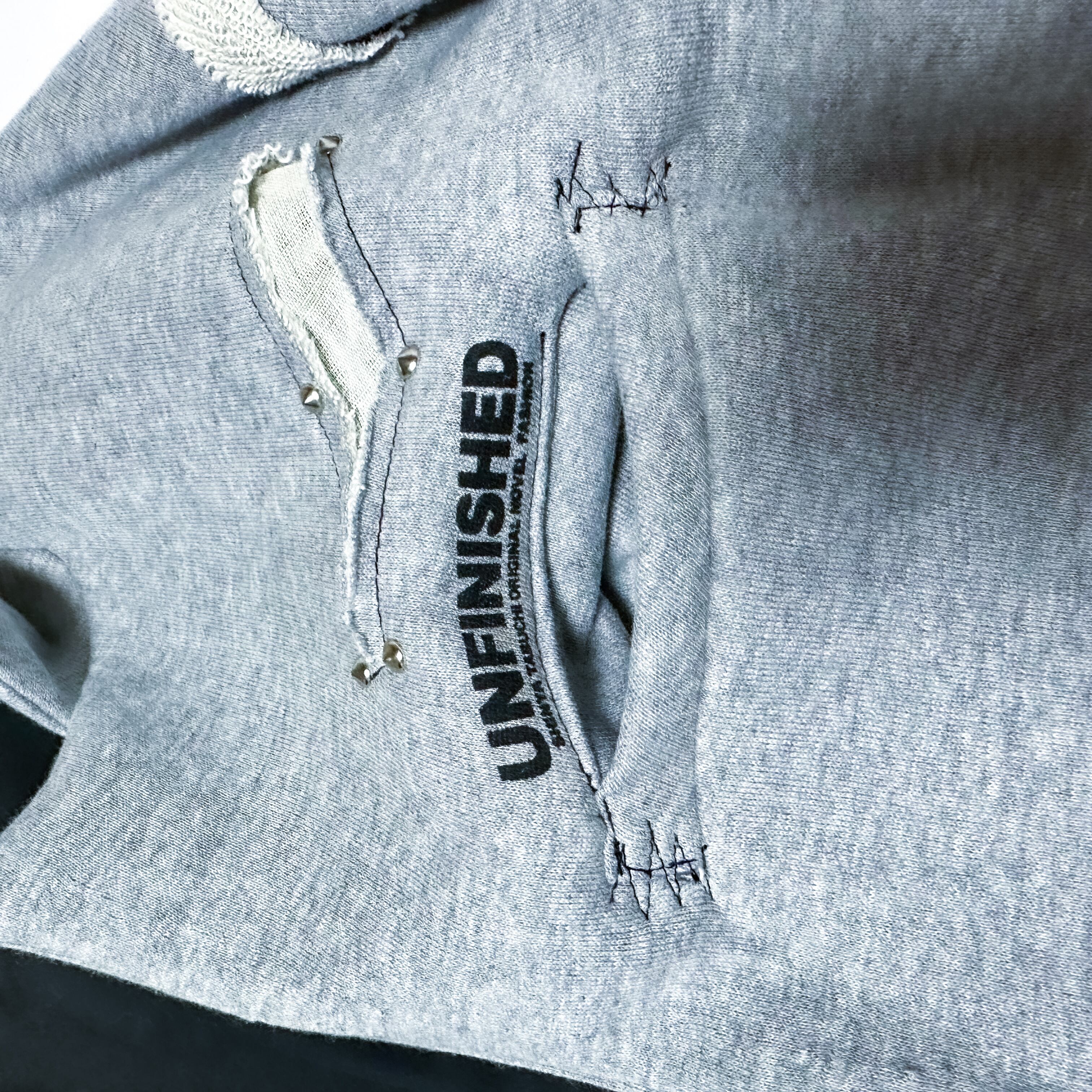 袖部分にはUNFINISHED独自のテキスタイルをシルクスクリーンにてプリントを施しました。