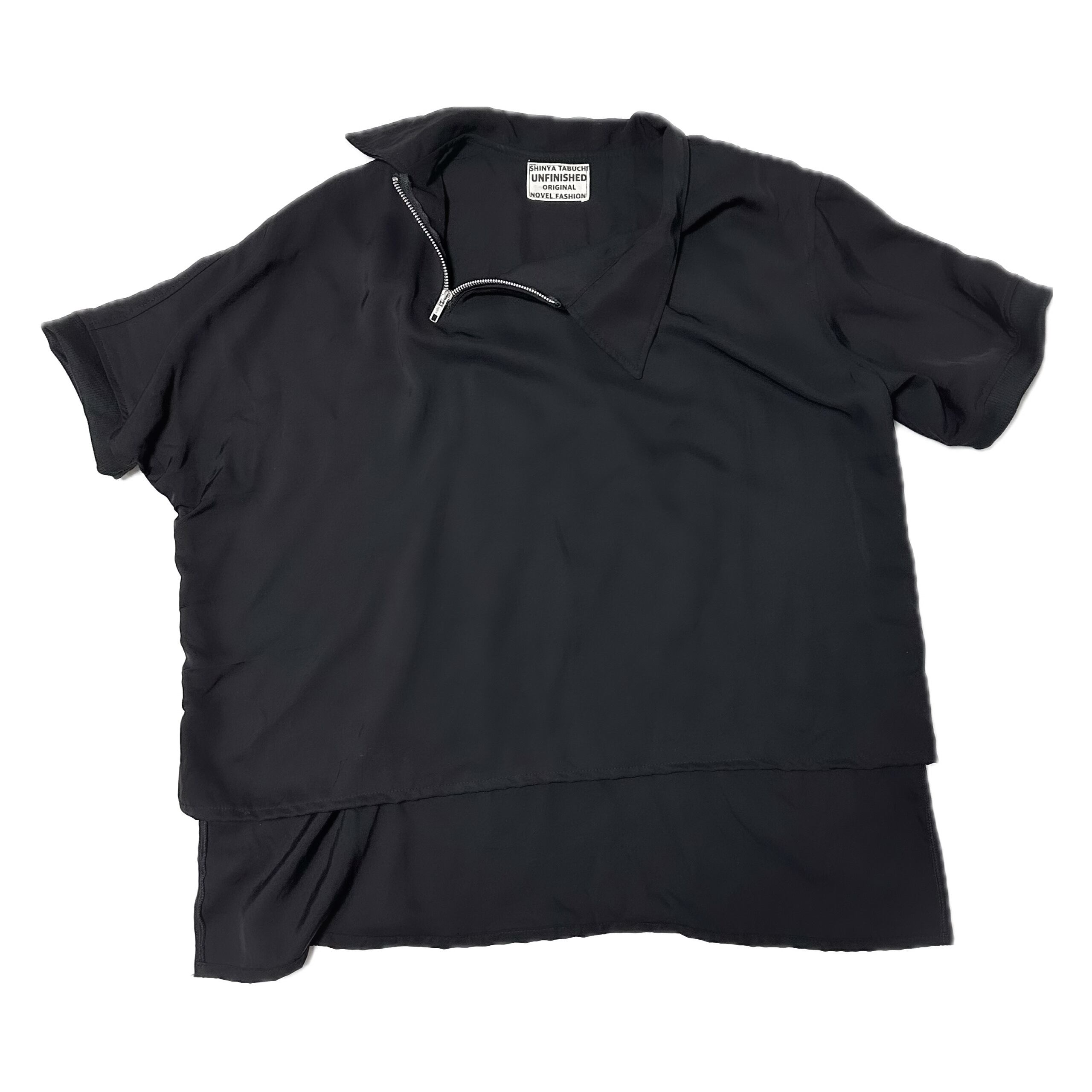 襟元はドルマンスリーブ側に向けた襟にファスナーの開閉が可能。