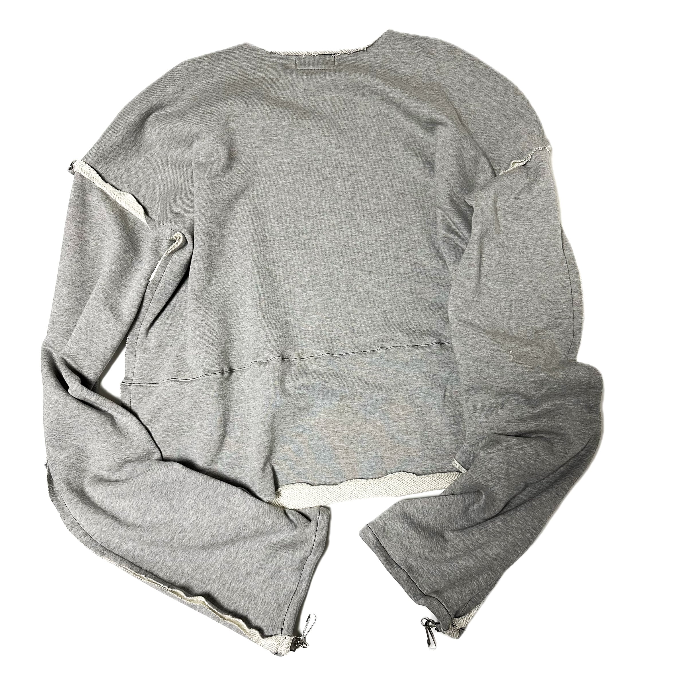 グレー生地に紺×蛍光ピンクのプリントを施したガーゼシャツをモチーフにしたトレーナーです。