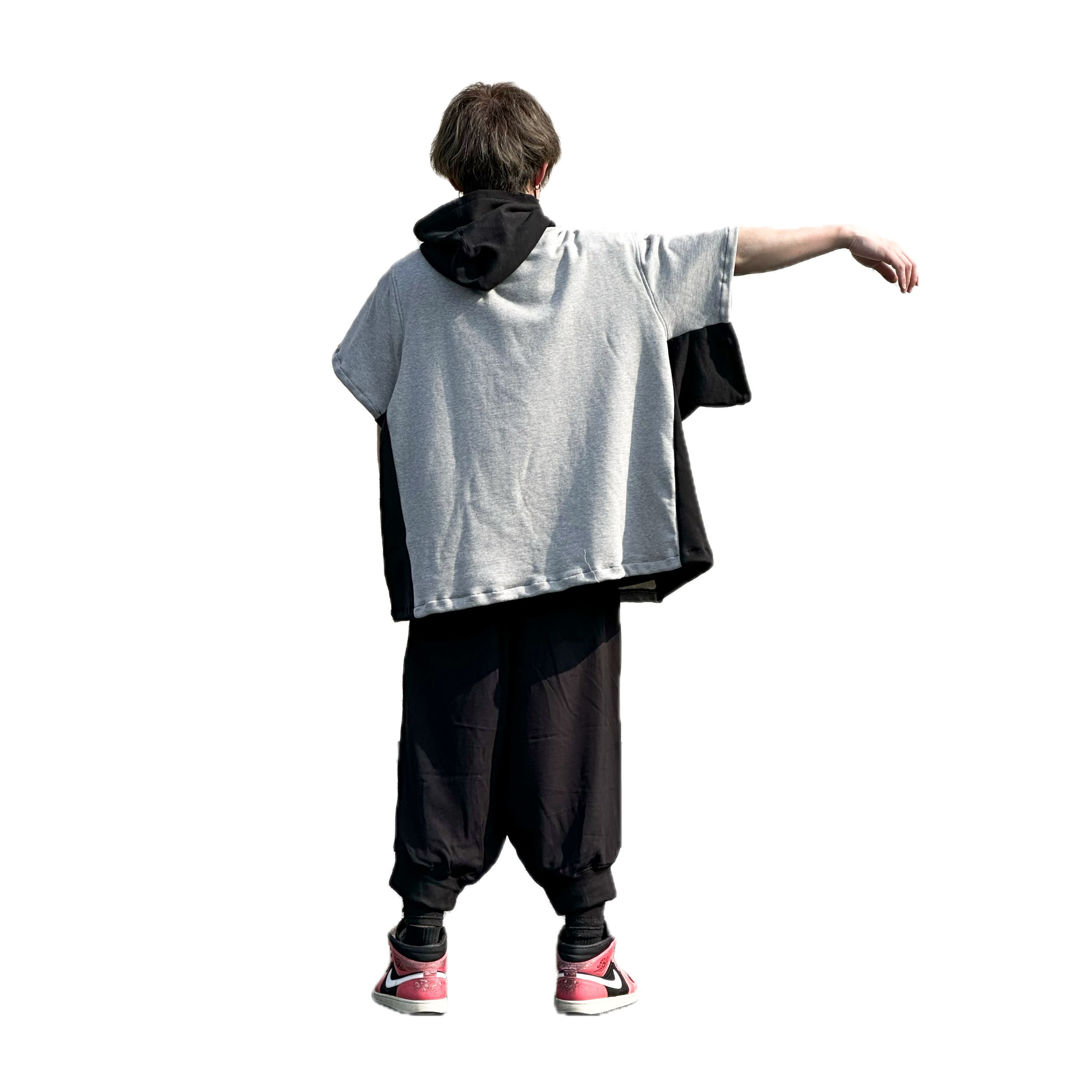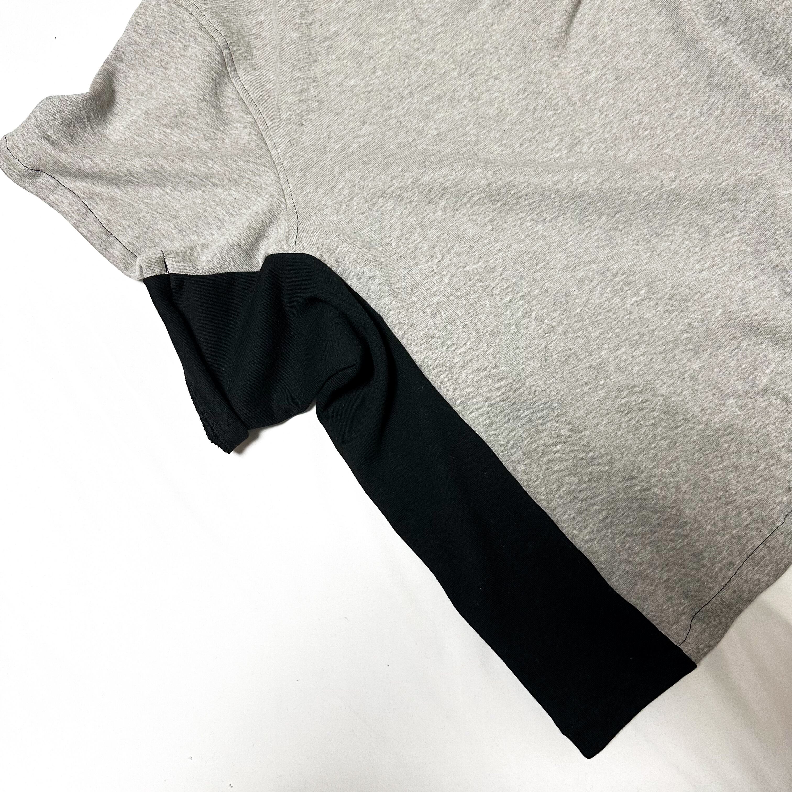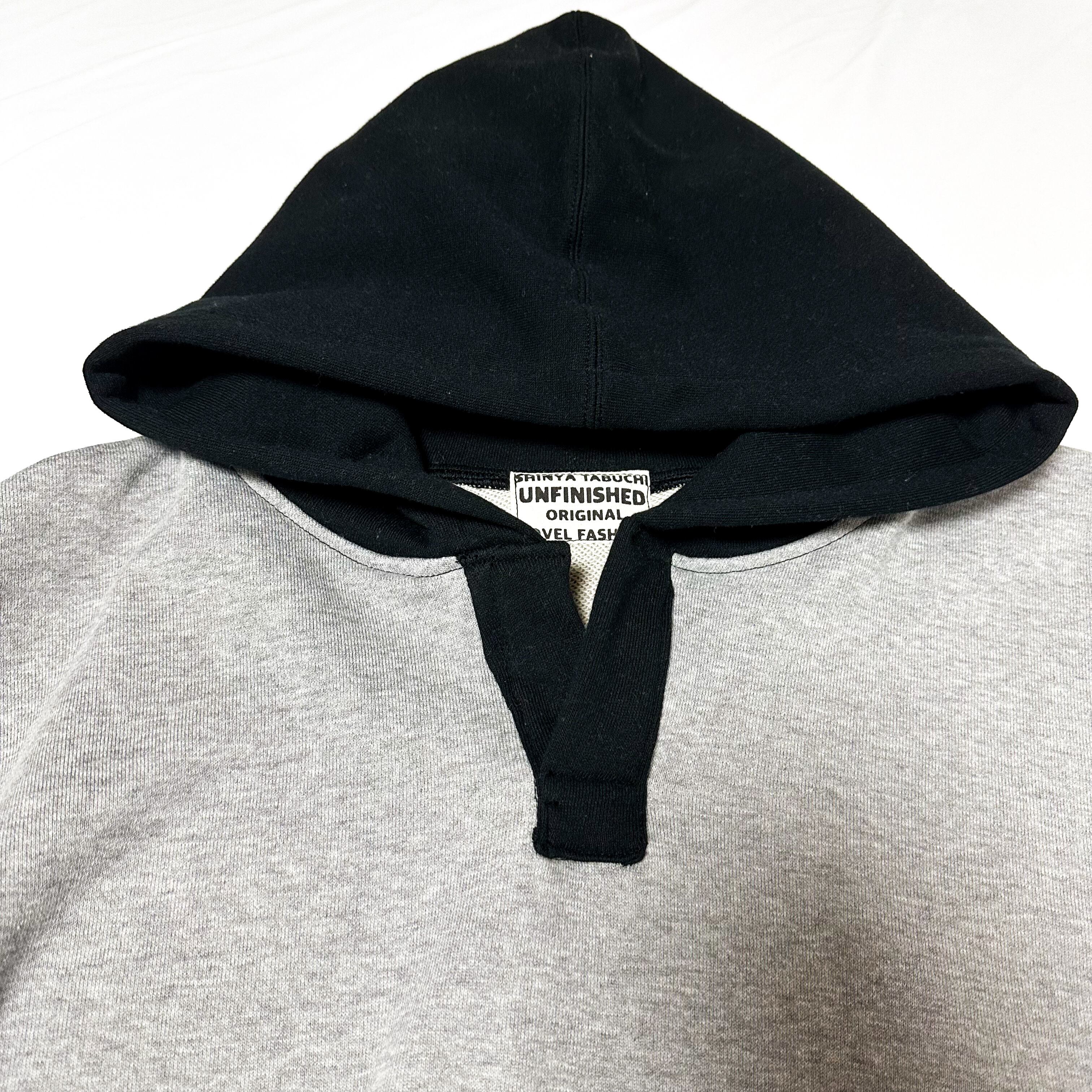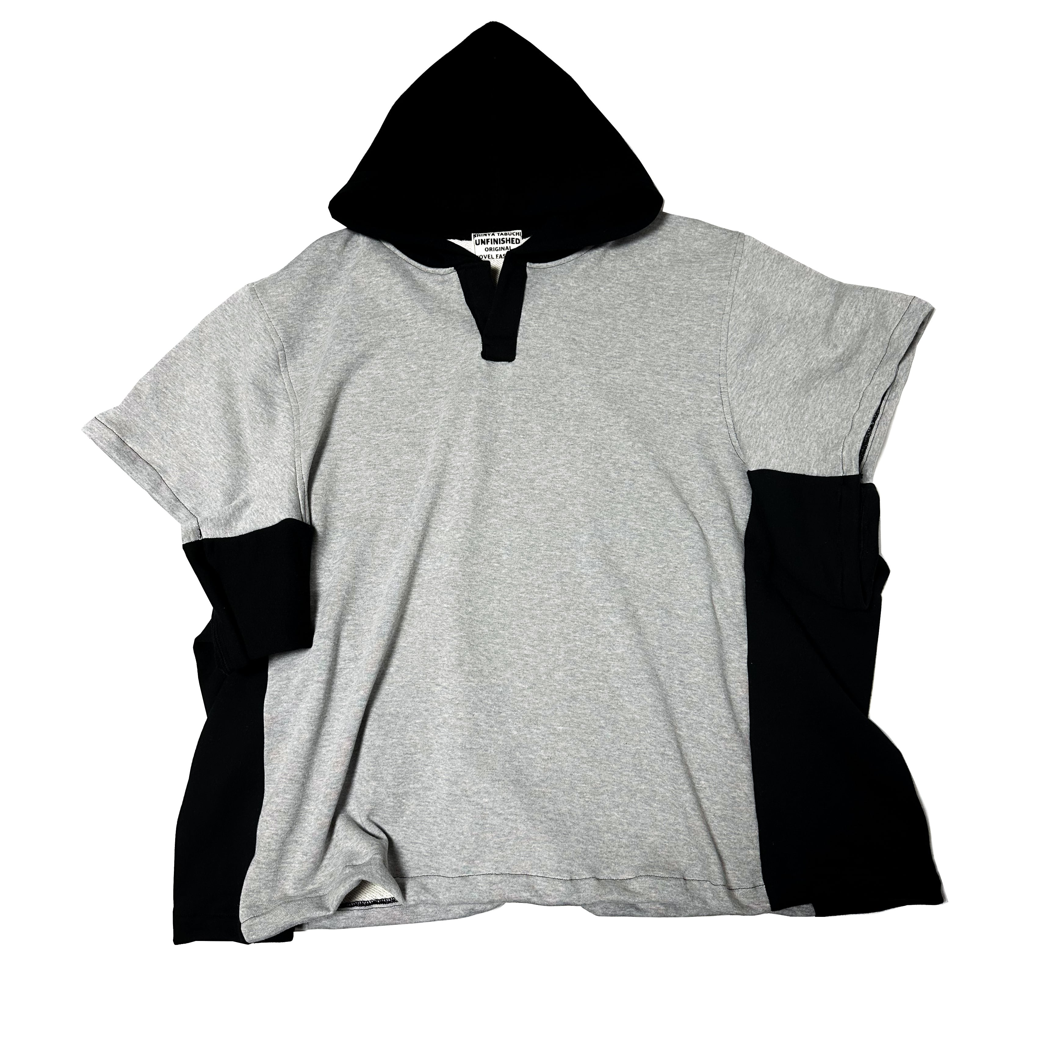 UNFINISHED変形パーカー24046 グレーとブラックの切り替えパーカー。 ワイドな身幅で着心地がとてもいいです。 グレーとブラックの組み合わせが相性が良くデニムやブラックスキニーなどとの相性がいいです。 【SIZE】 肩幅57㎝ 身幅88㎝ 着丈72㎝ 【送料】 購入金額に関わらず送料無料。