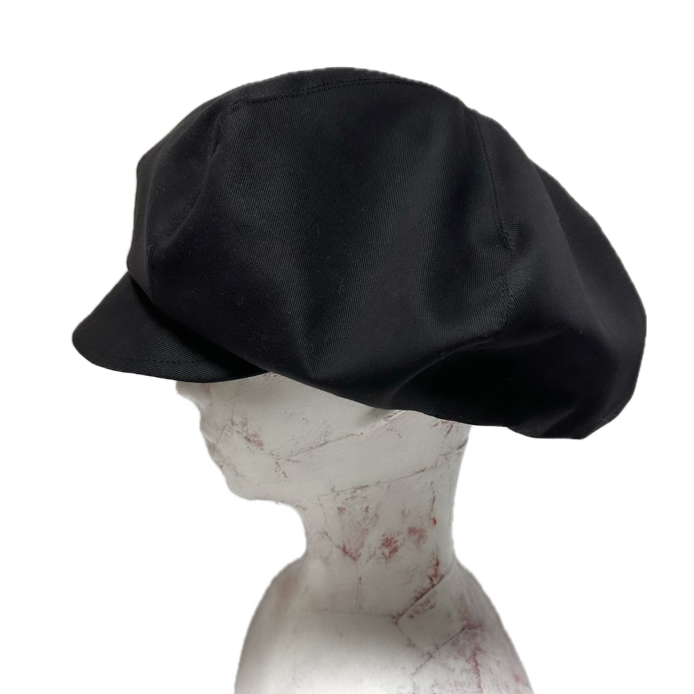 UNFINISHEDキャスケット24051 黒ツイル生地をベースに少し大きめのキャスケットを製作しました。 リブ部分には肌触りとフィット感の良いパイル生地を使用しております。 【サイズ】 内輪、62〜63㎝ (頭まわり60㎝前後の人なら問題なく被れます。) 上から測った寸法です。目安程度にご参考ください。 帽子横29㎝ ツバ側縦寸法29㎝ 【送料】 購入金額に関わらず送料無料。