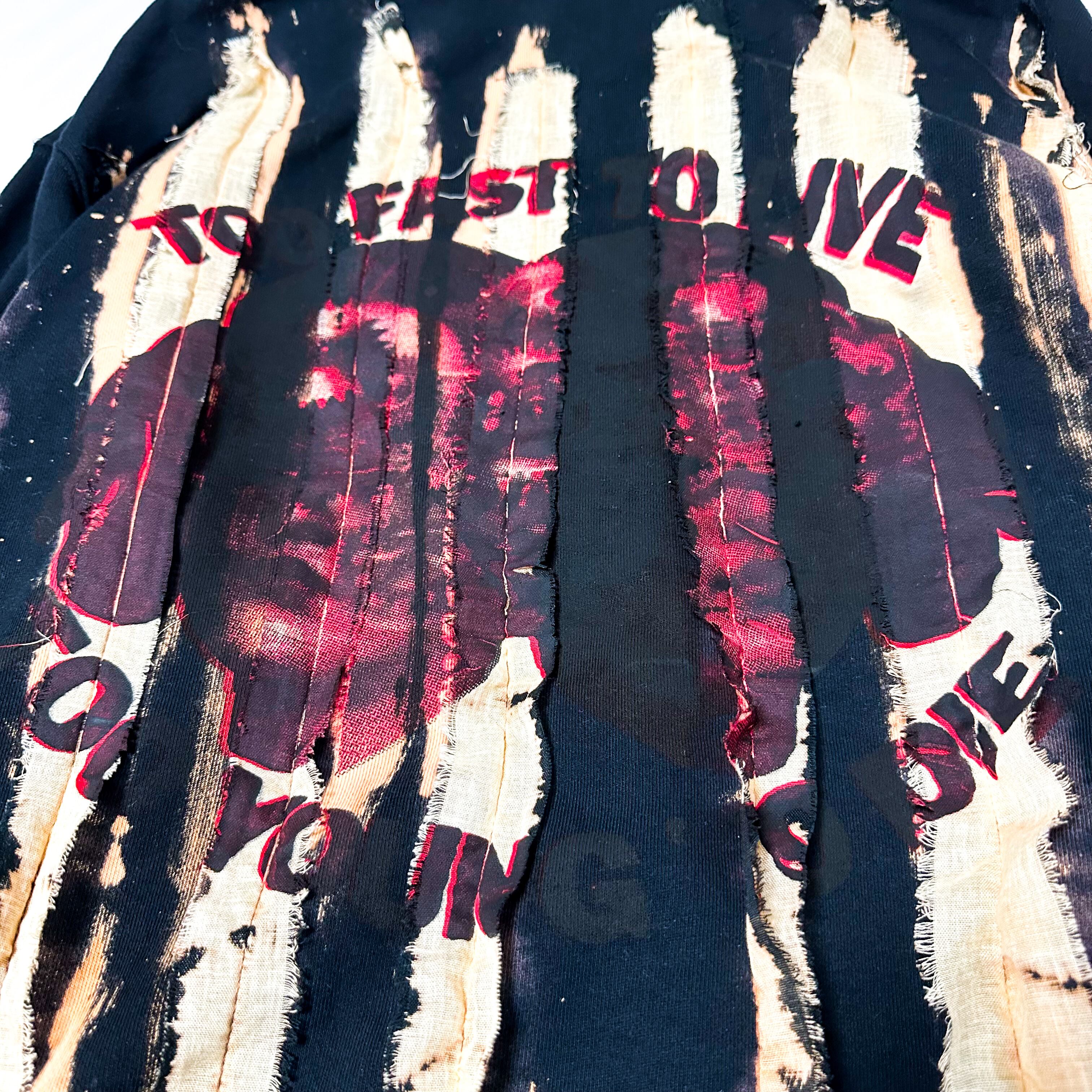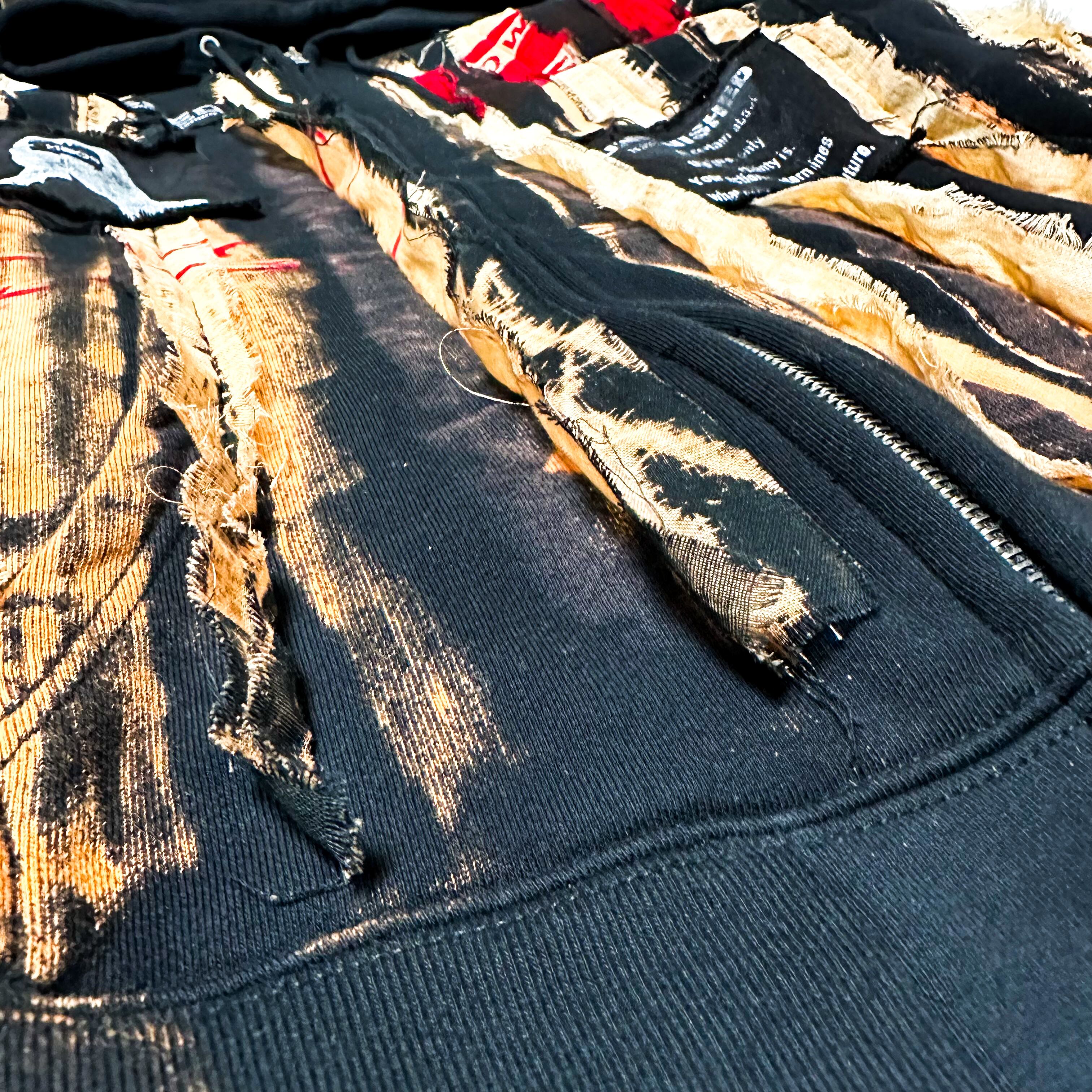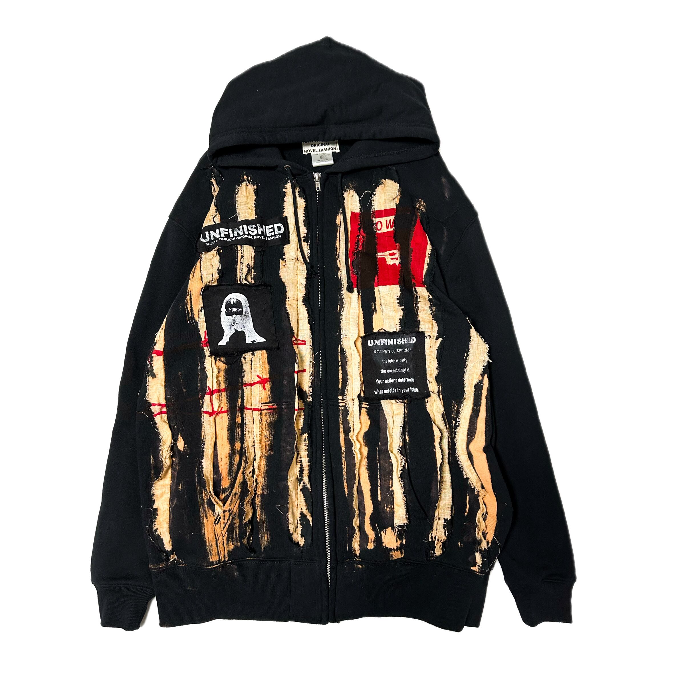 UNFINISHED ダメージパーカー24057 ブリーチ加工を施したダメージ風パーカー。 パッチ類にもダメージを当てており独特な雰囲気がありスキニーやワイドパンツとの相性がとてもいいです。 もちろんボンテージパンツとの相性も抜群です! 【ボディ色】 black 【サイズ】 肩幅55㎝ 着丈73㎝ 身幅62㎝ 袖丈57㎝ 【送料】 購入金額に関わらず送料無料。