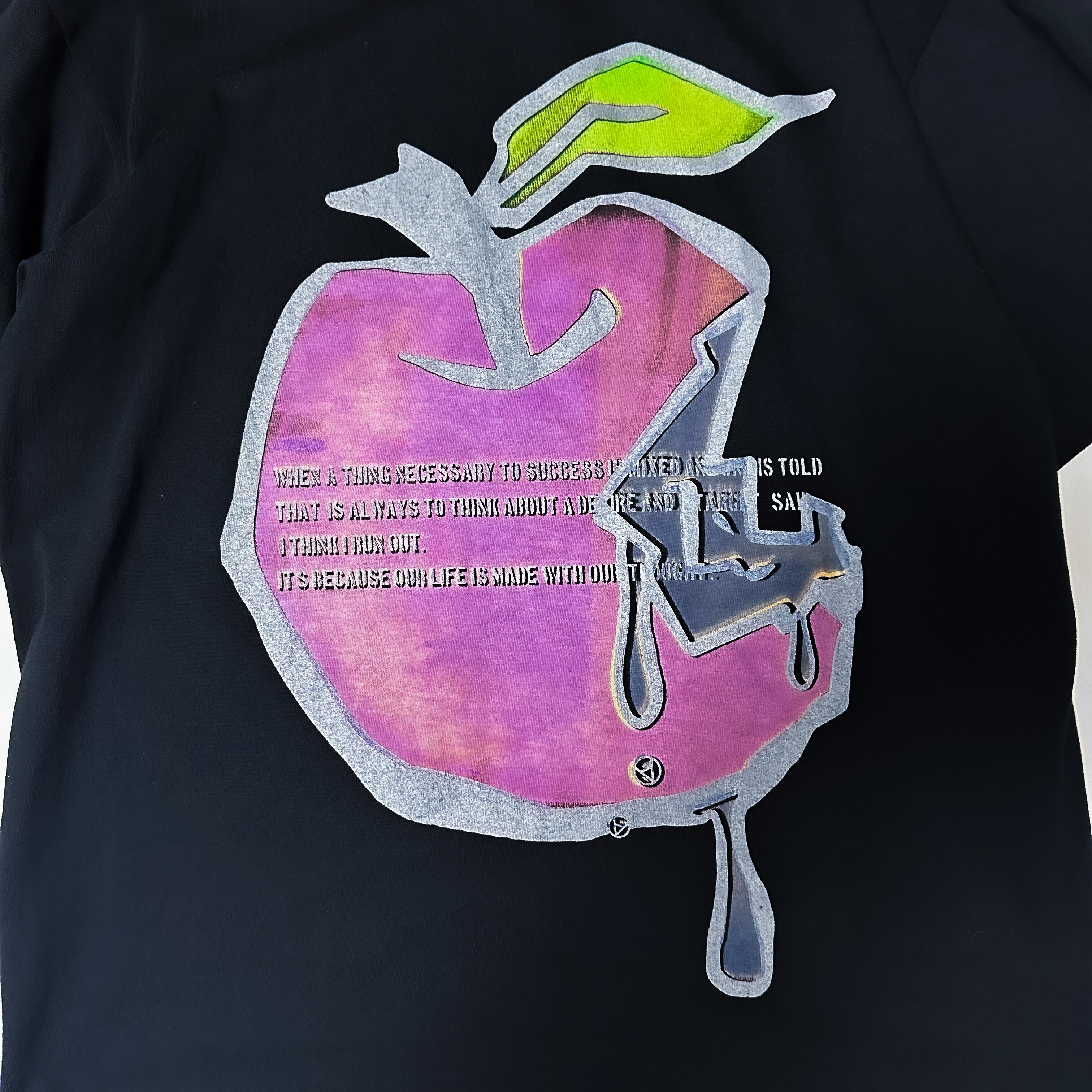 リンゴの下には雫がありそこにはアナーキーマークを逆向きに配置しました。