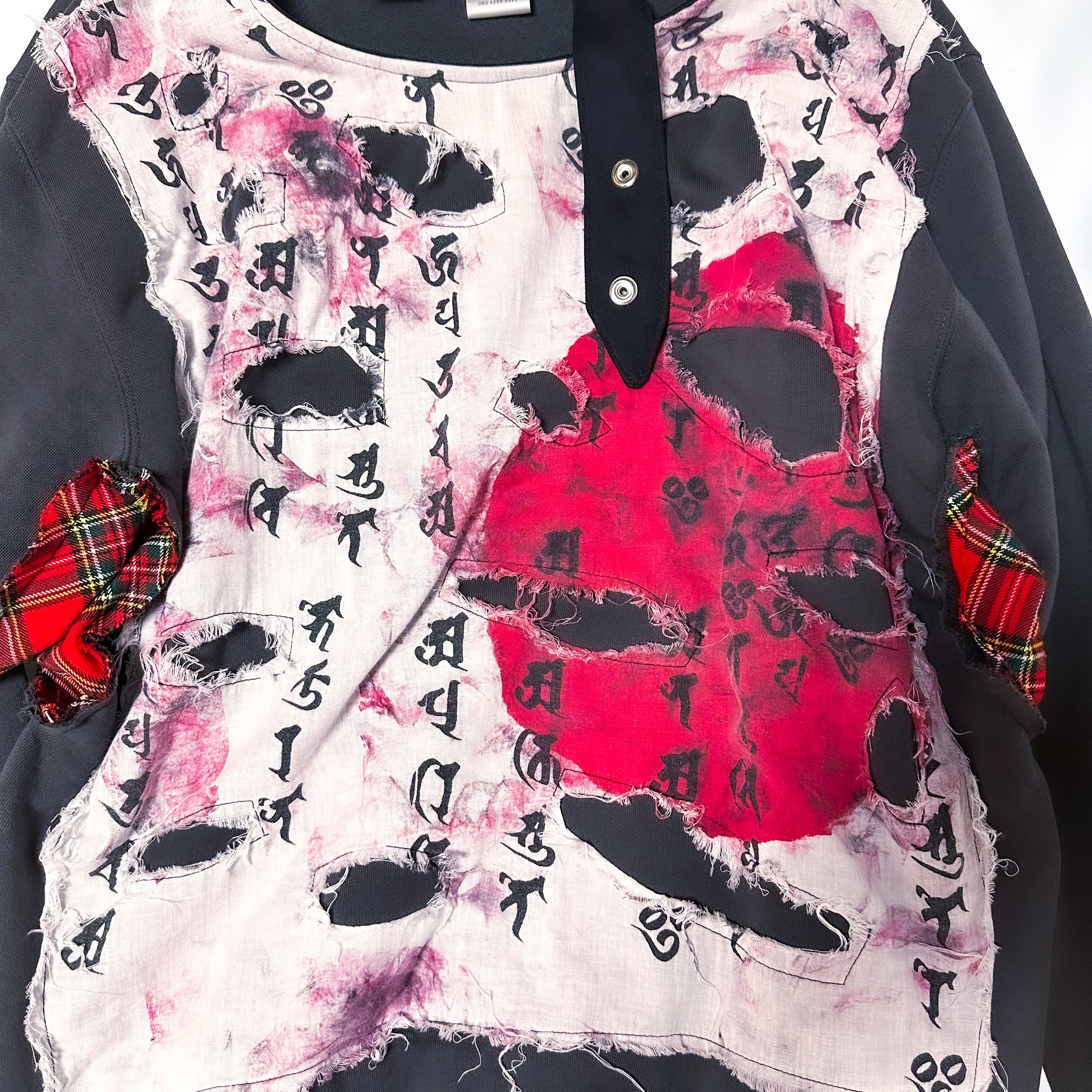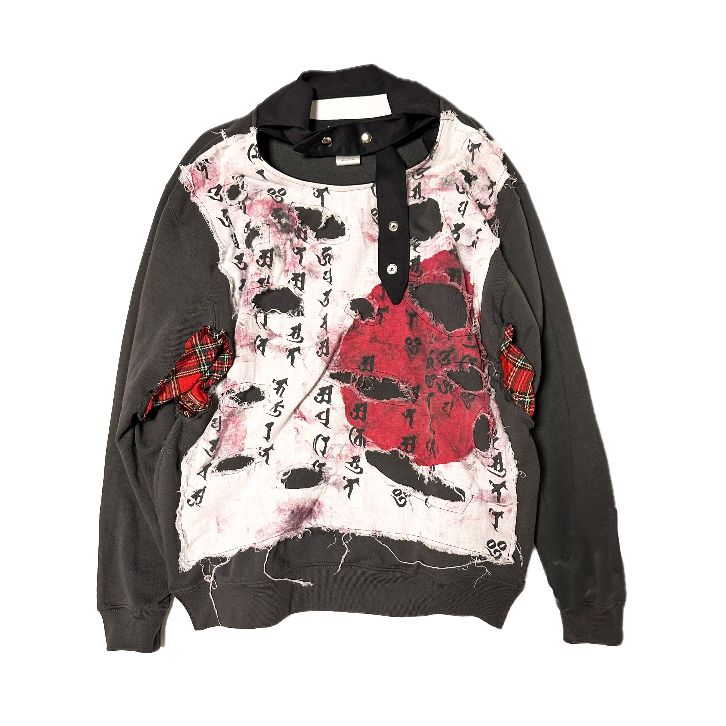 UNFINISHED ダメージトレーナー24084 首元のチョーカーは取り外しが可能です。 裾部分はファスナーで開閉ができます。 洗濯をするごとにガーゼ部分のほつれが楽しめる商品です。 【商品詳細】 素材 コットン100% 【ボディ色】 スミ 【サイズ】 身丈70㎝ 身幅60㎝ 肩幅55㎝ 袖丈62㎝ 【送料】 購入金額に関わらず送料無料