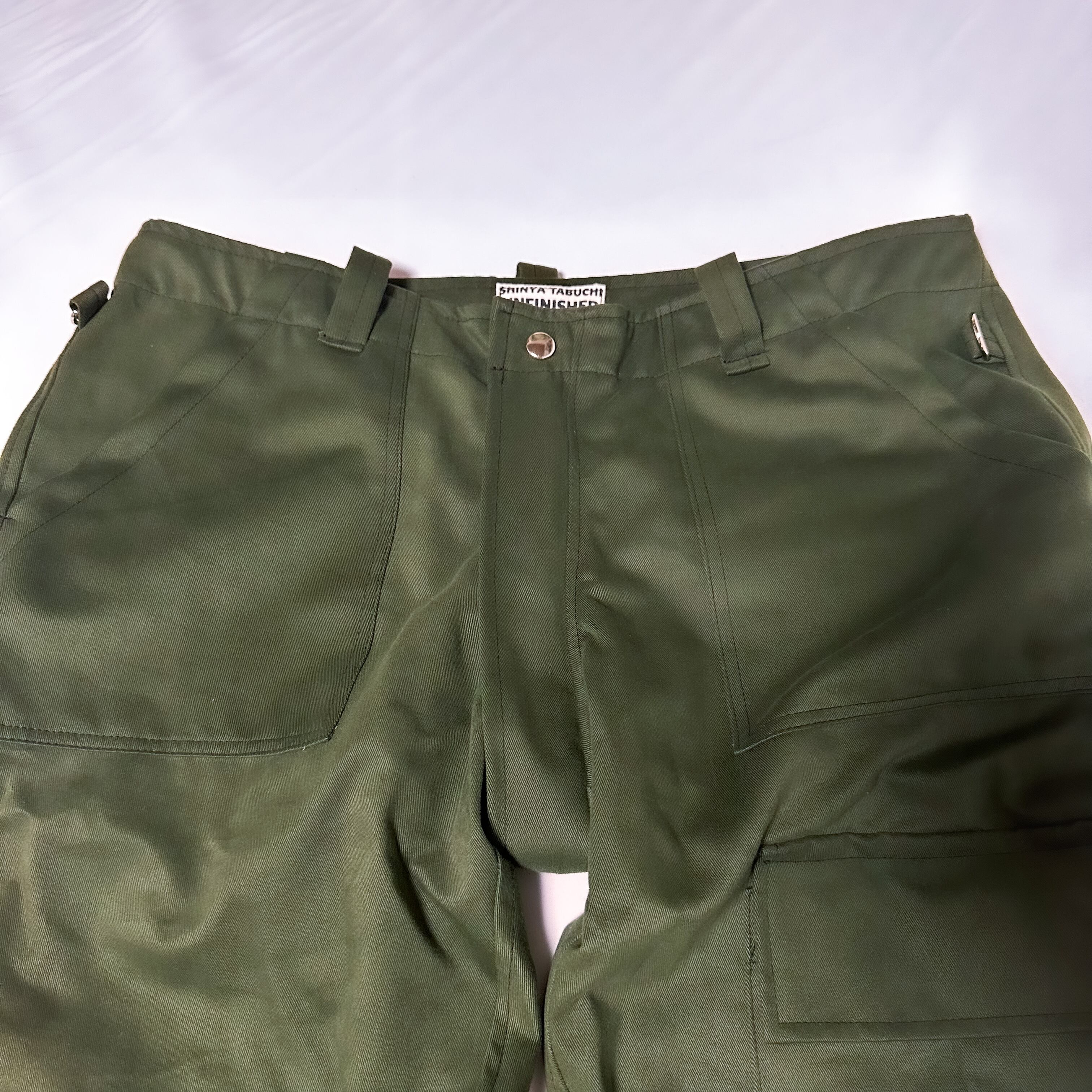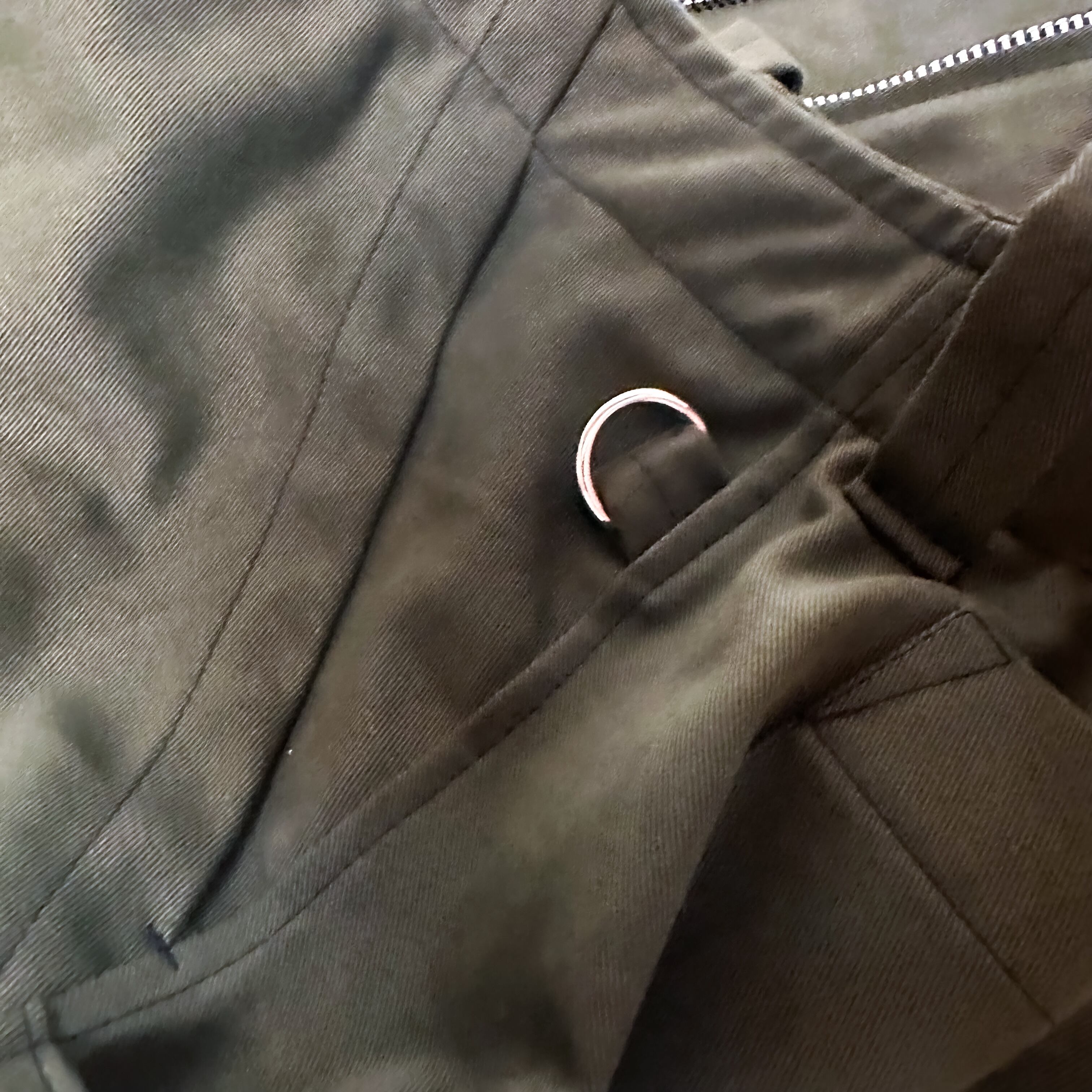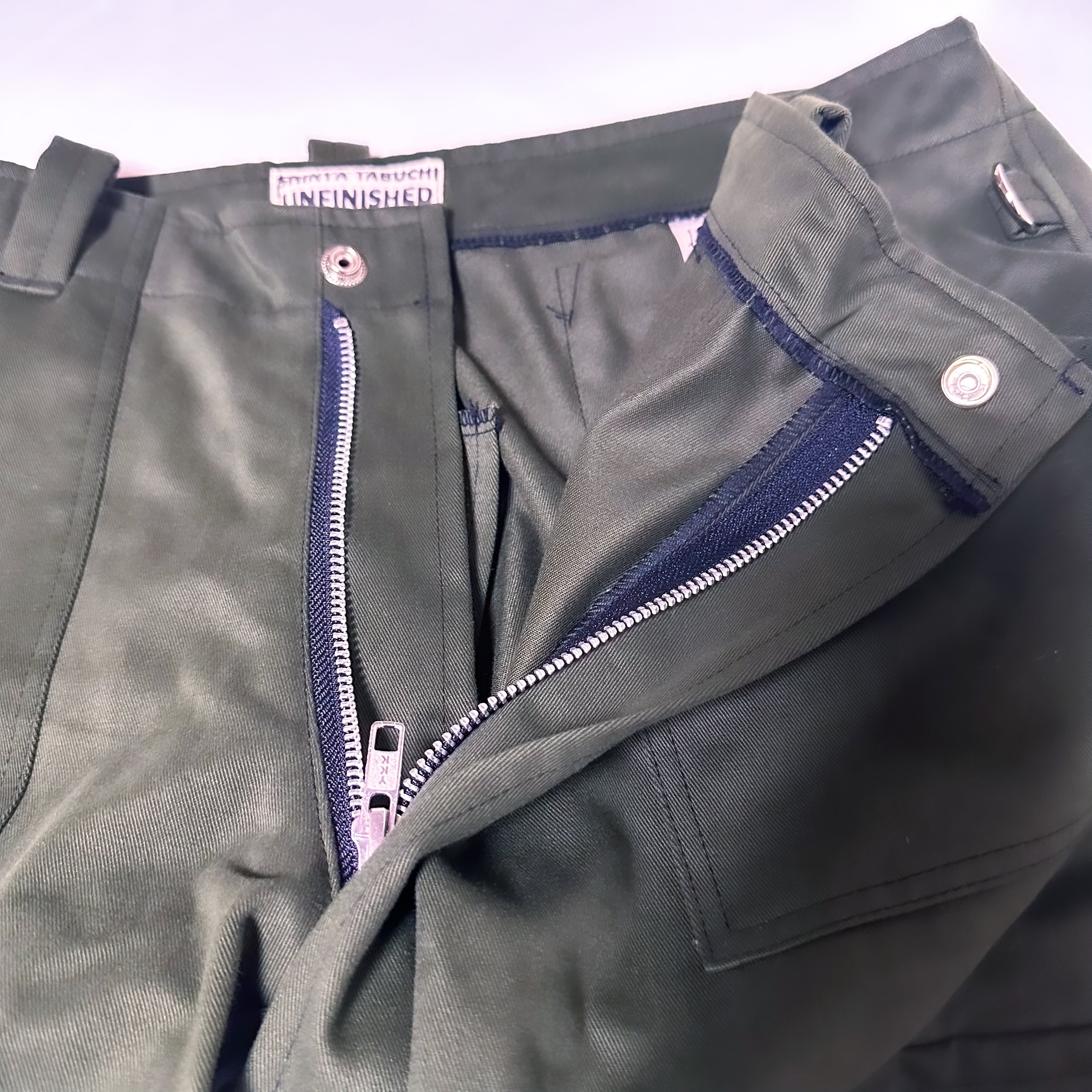 ツイル生地をベースにカーゴパンツの要素を取り入れたボンテージパンツを製作。