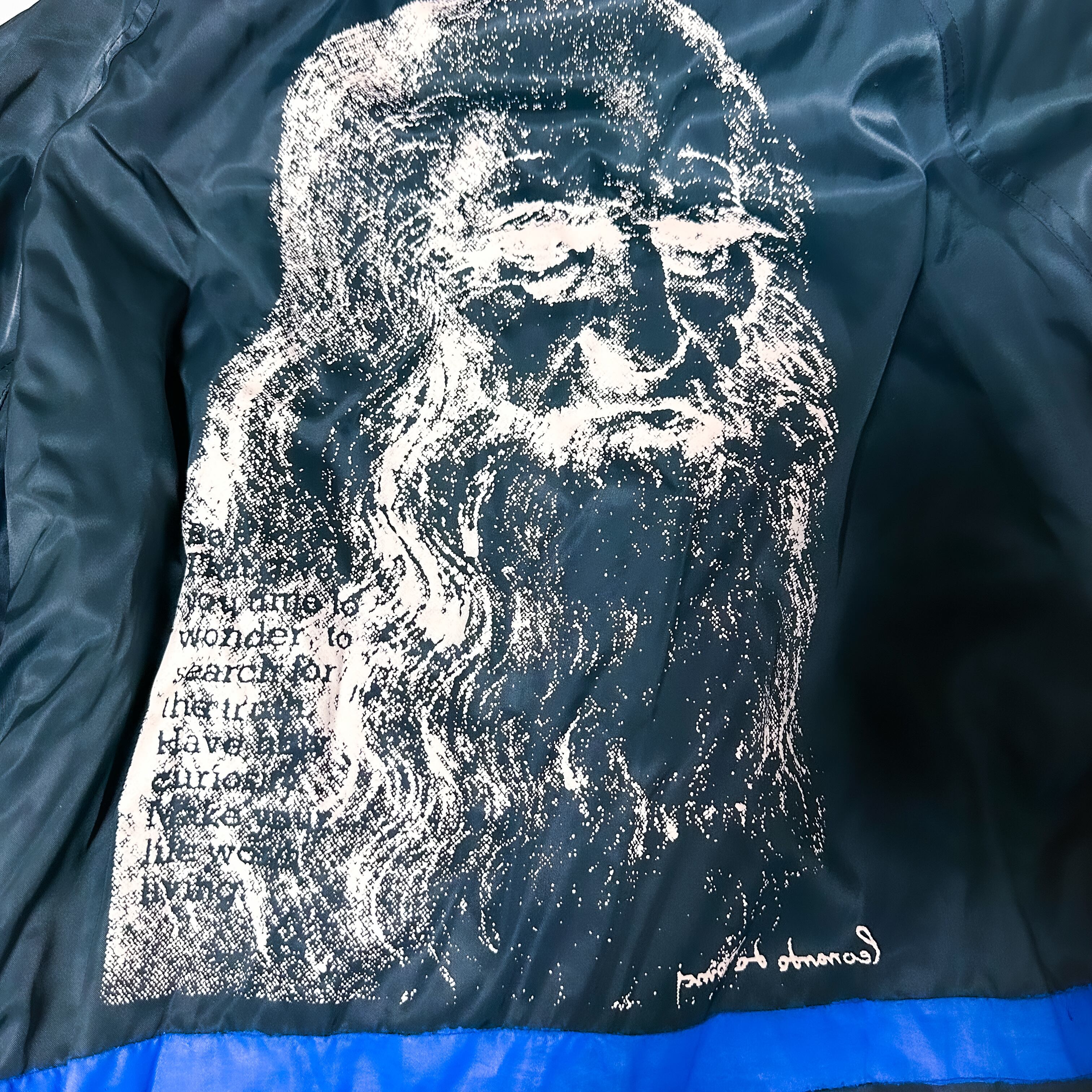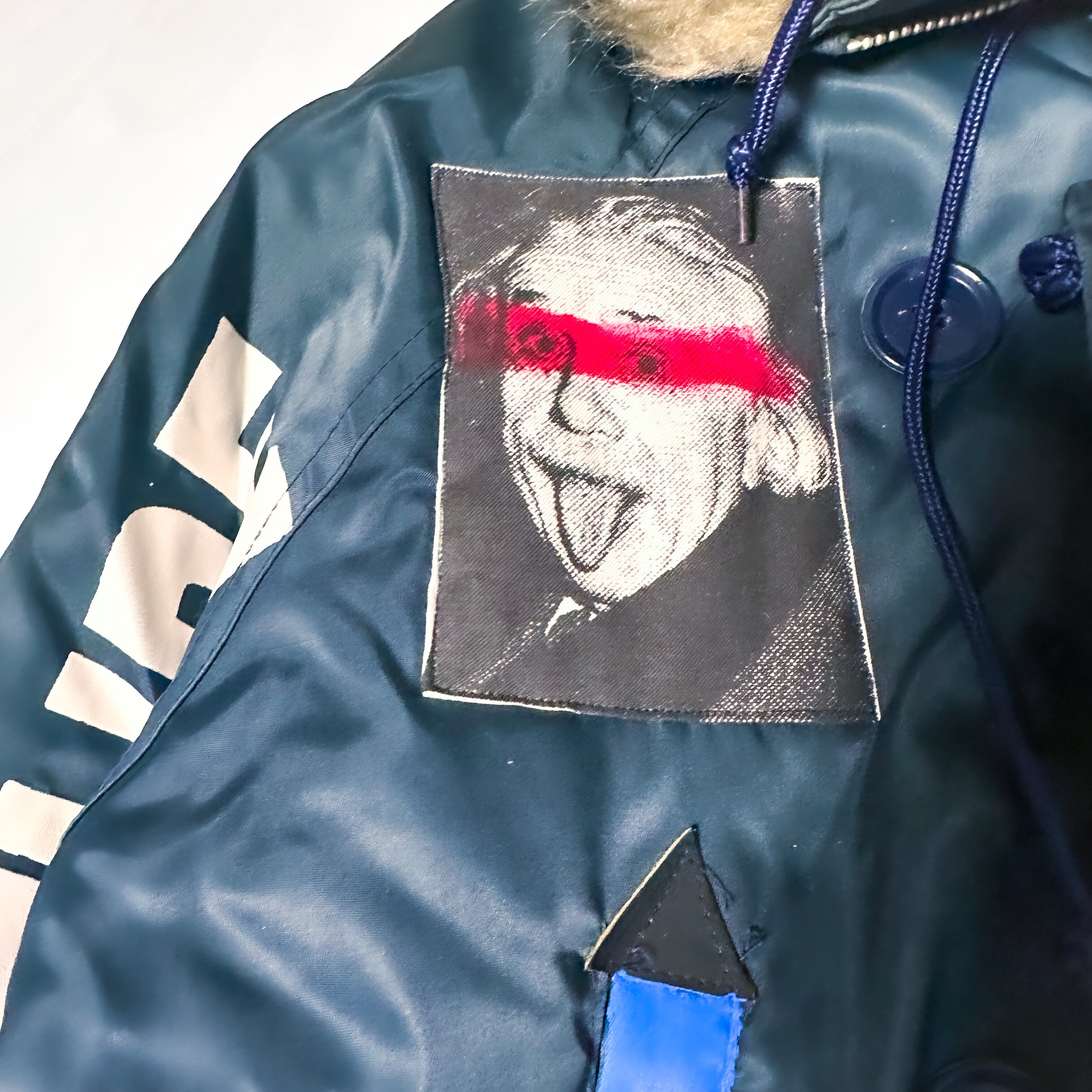 こちらの商品は、N-3Bモッズコートをベースに表はアインシュタイン、背中にダビンチをプリントを施しました。