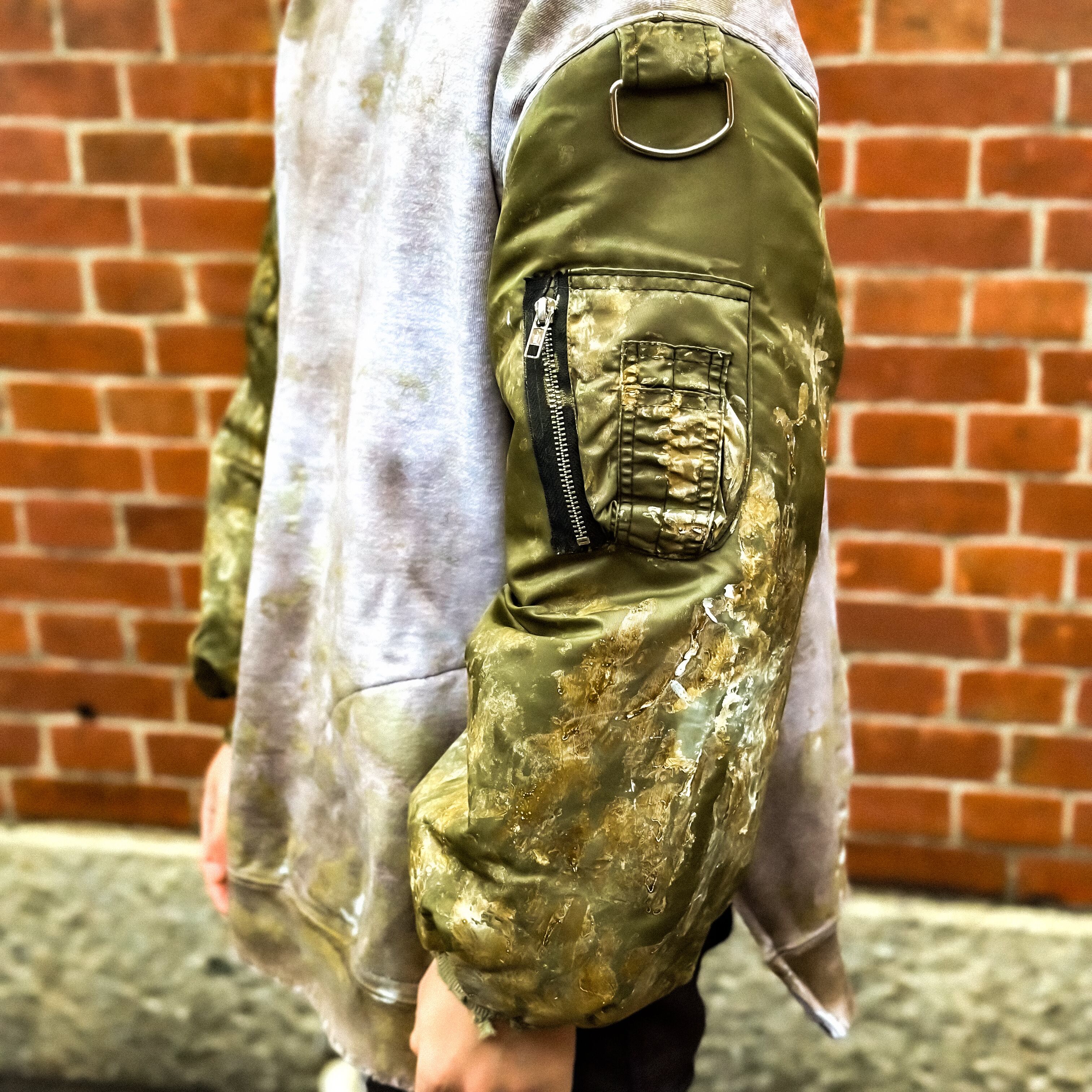 袖切り替え部分には中綿入りと切り替え袖を採用しておりMA-1同様の着用感で防寒性にも優れています。