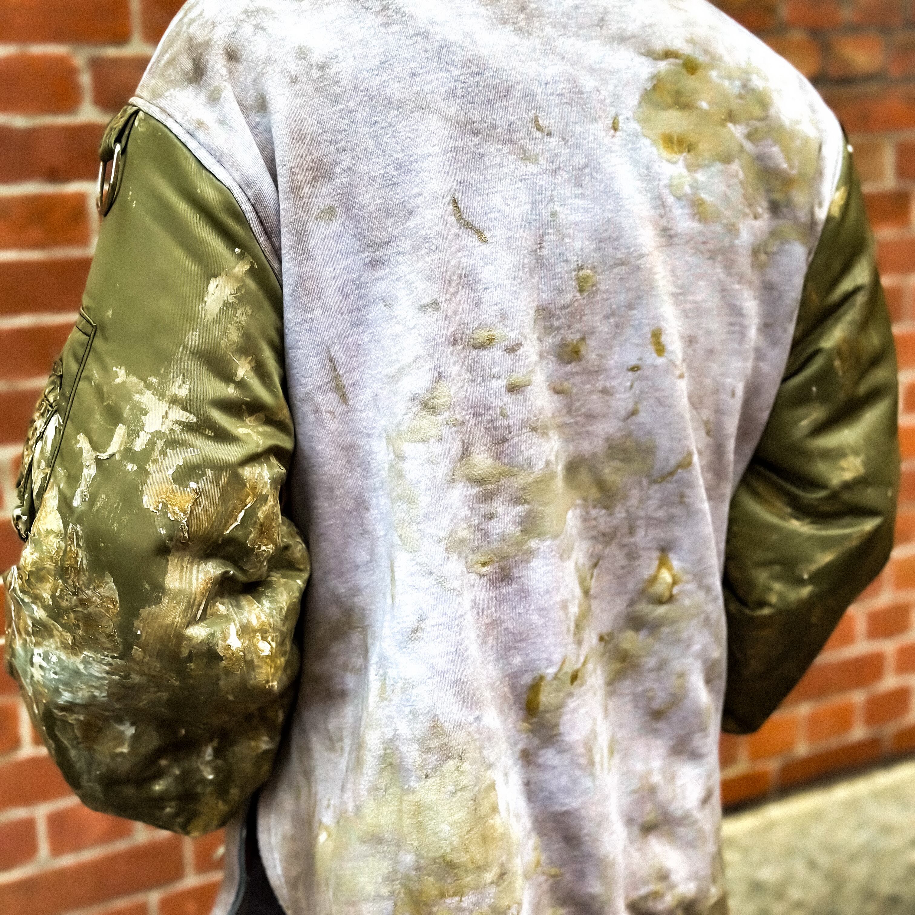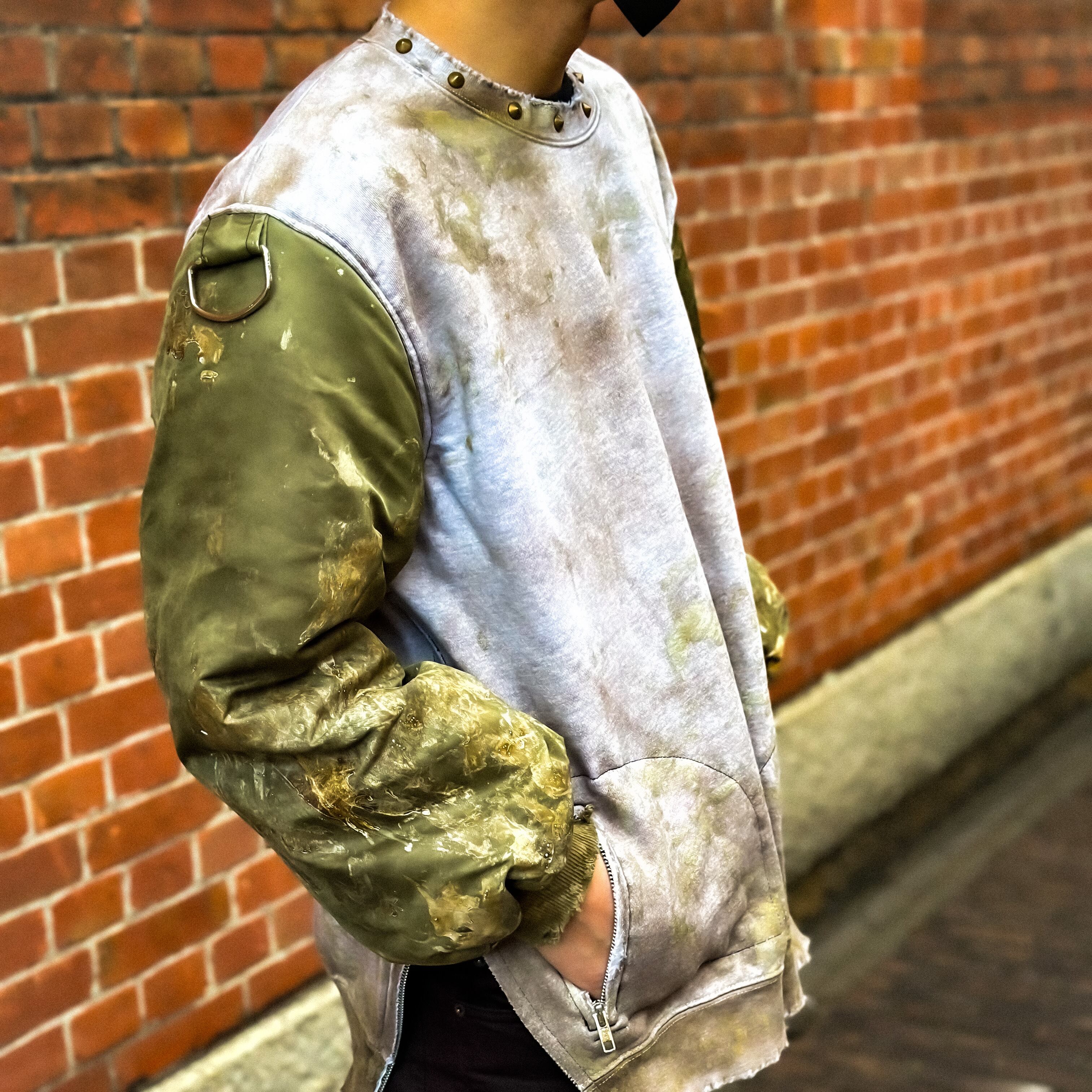 自然環境にさらして洋服に表情を与え、その表情を活かしながら加工を施す手法です。