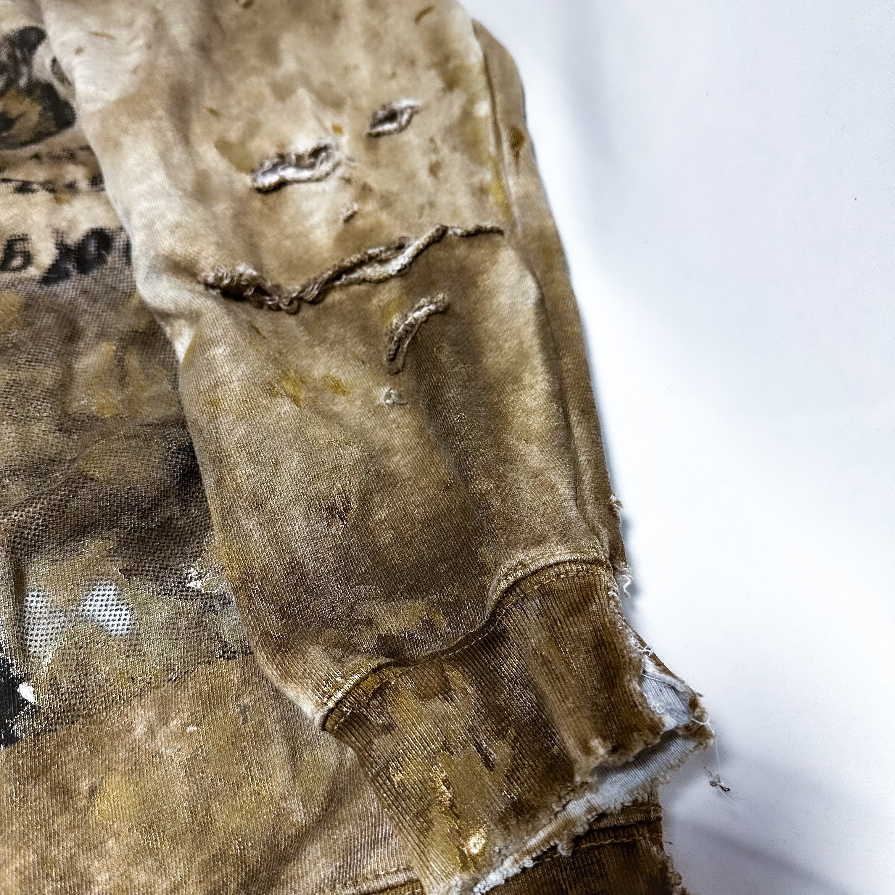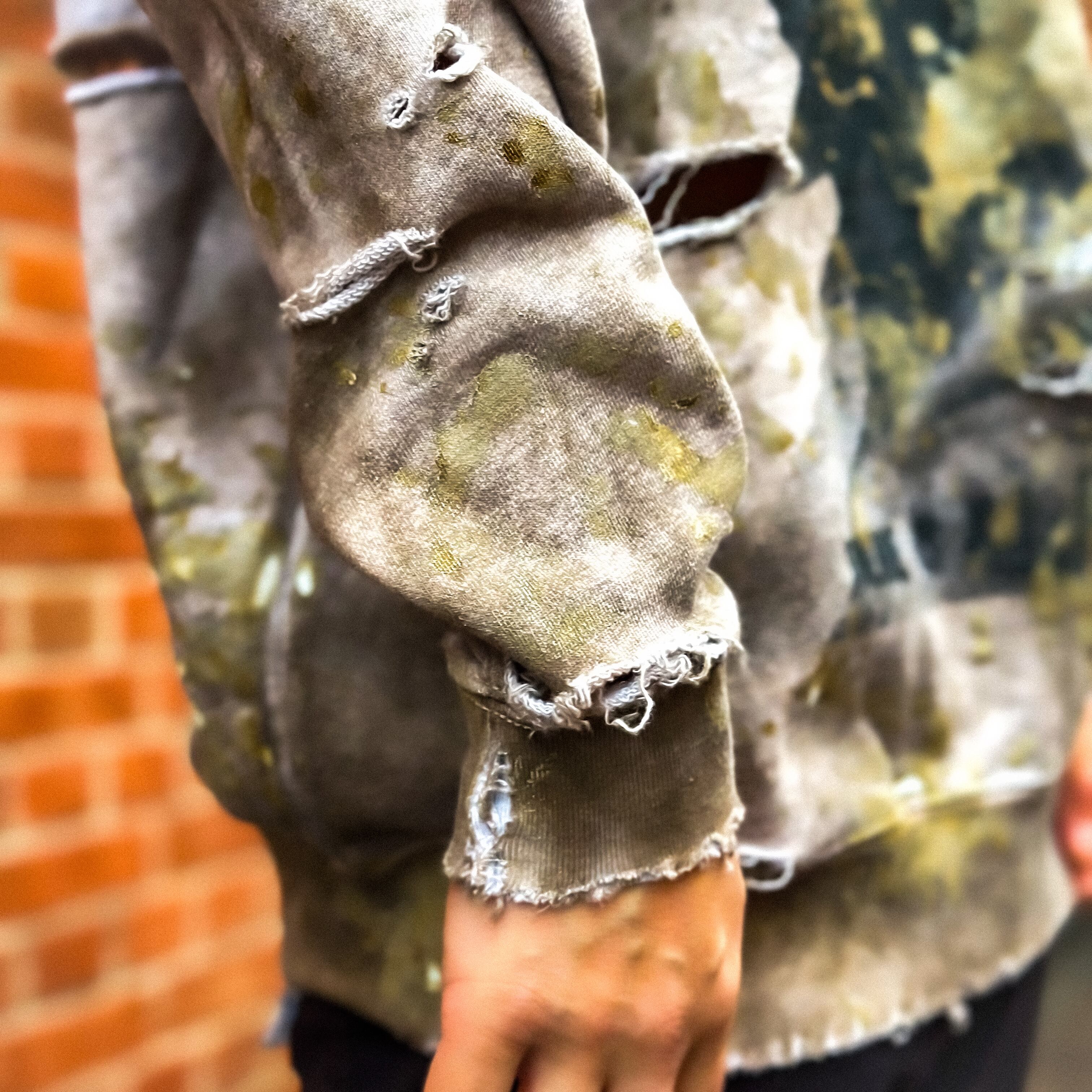自然環境にさらして洋服に表情を与え、その表情を活かしながら加工を施す手法です。