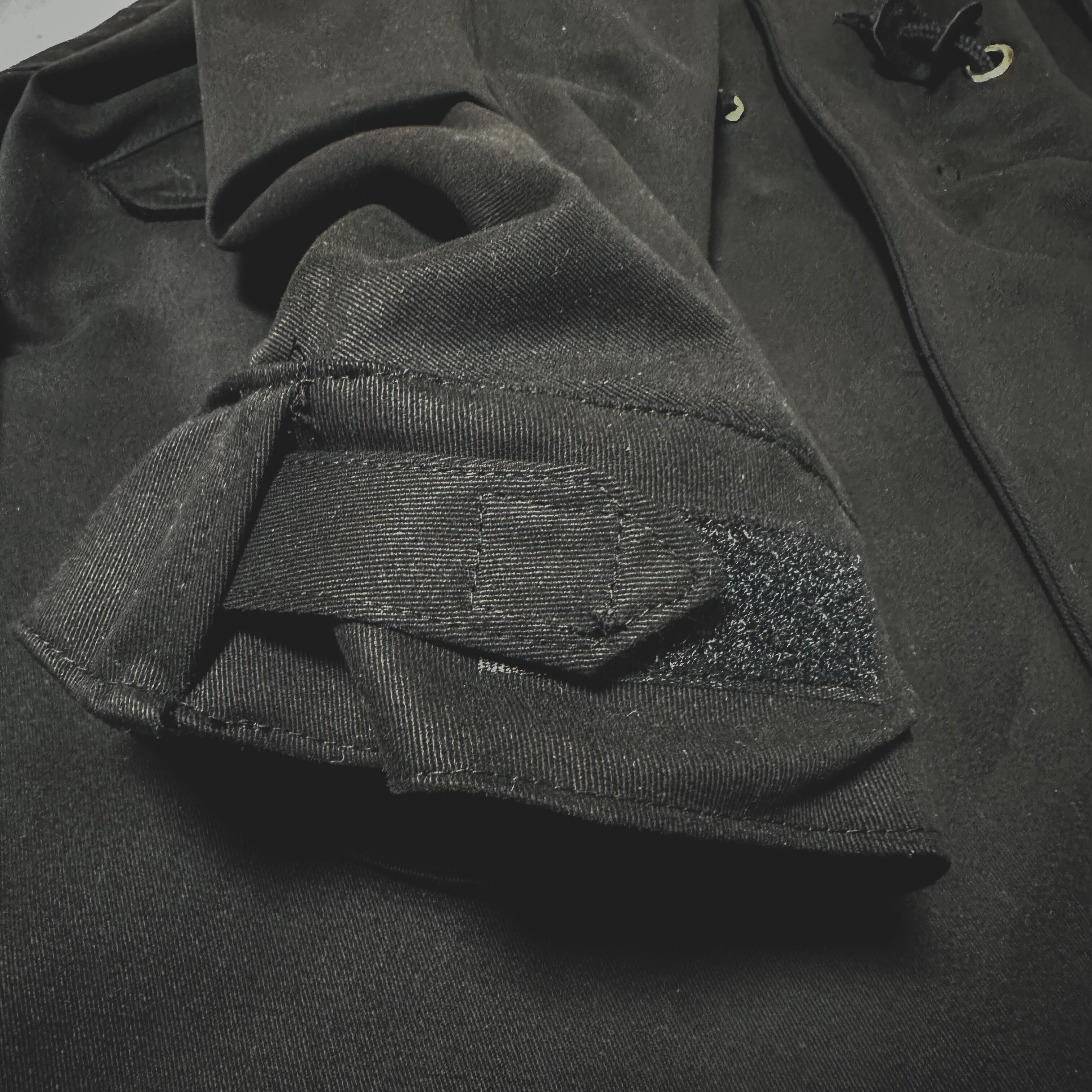 袖口の調整が可能で内部にゴムを使用しておりベルト部分の伸縮により調整が可能です。
