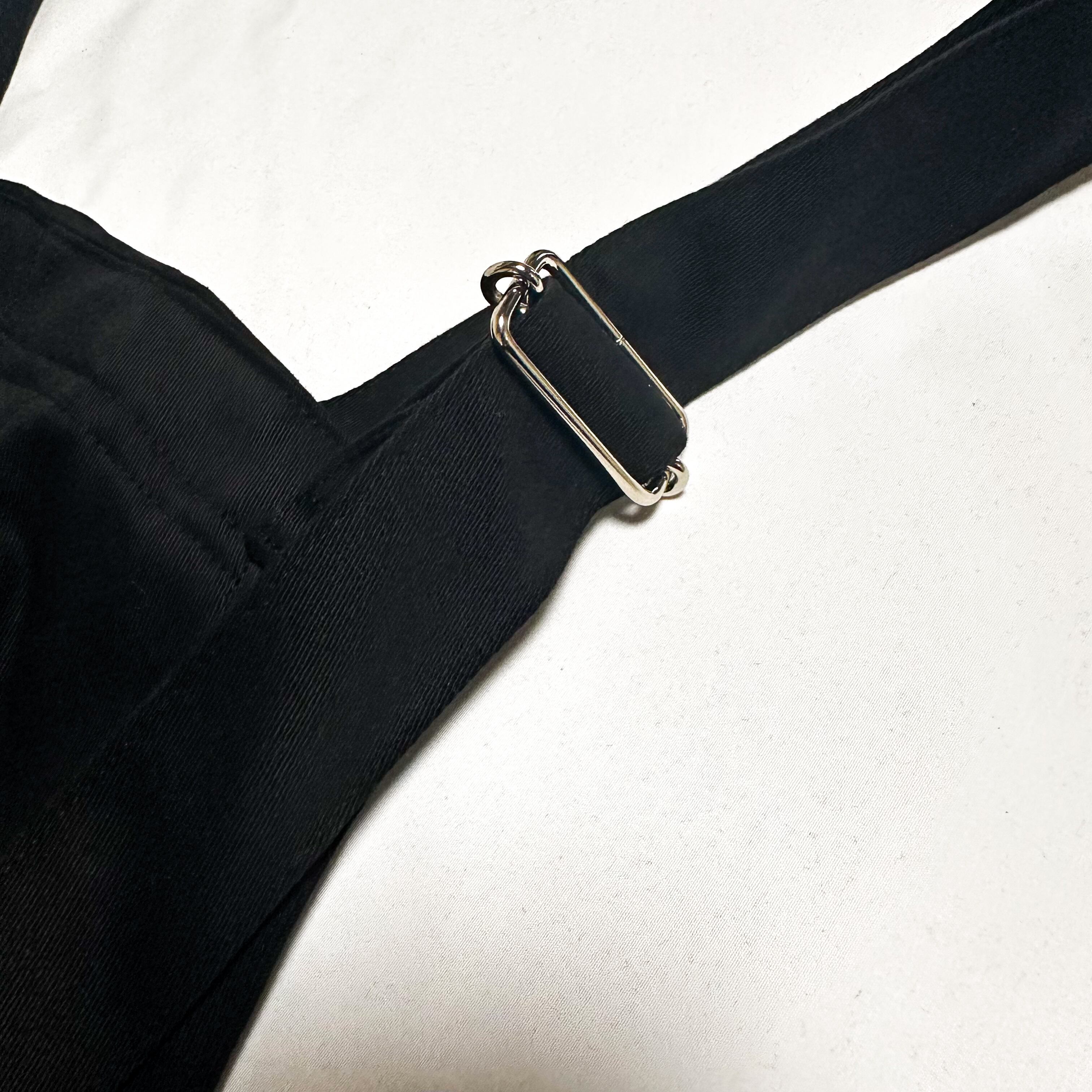 ブラックツイル生地をベースにトップ部は細め、パンツ部は太めの綺麗なシルエットを実現。