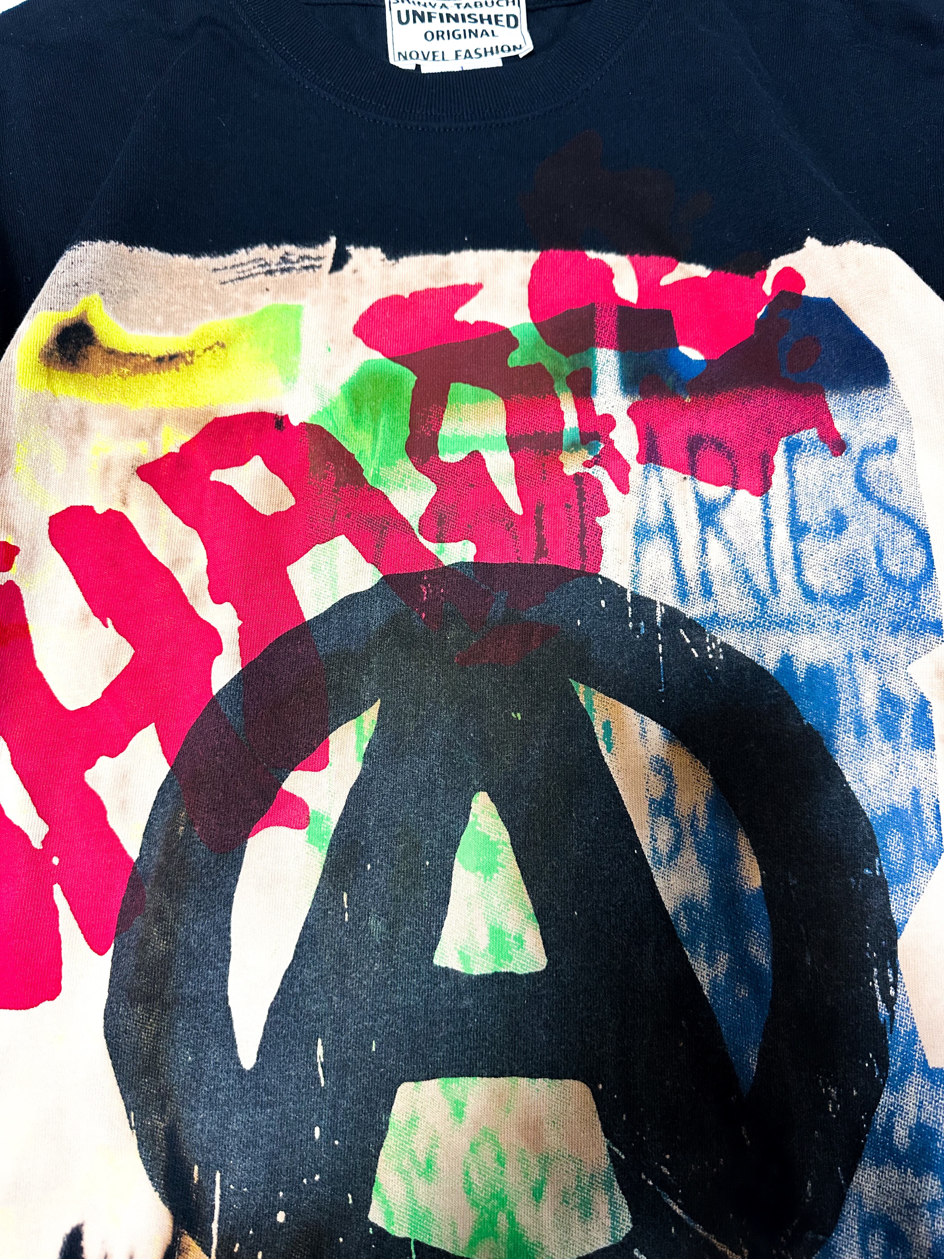 カラフルなカラーリングを採用したアナーキーマークモチーフのTシャツ。